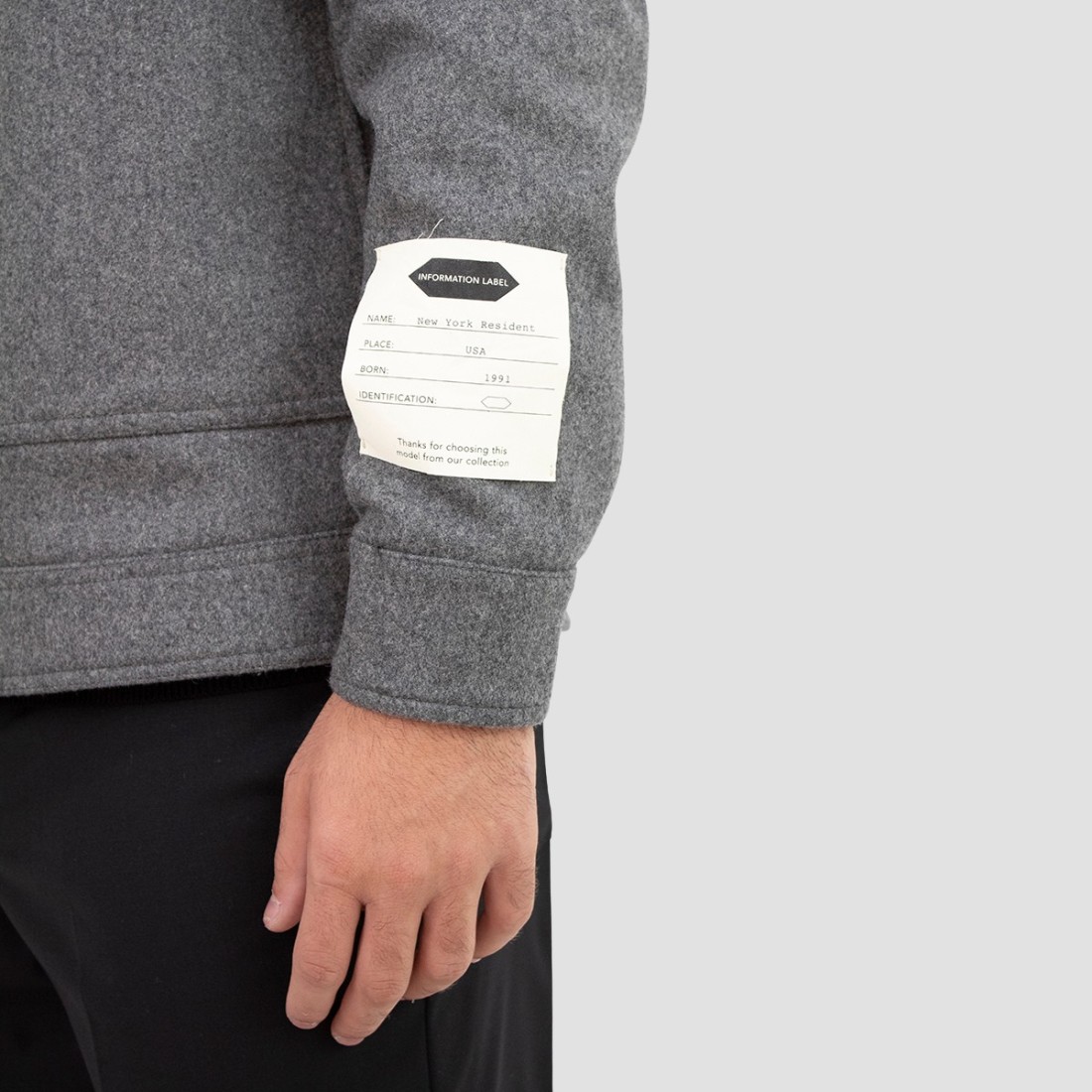 NEW YORK RESIDENT - Gray wool and polyester jacket with information label sewn on left sleeve hem. Button closure, double front pocket with flap, adjustable cuffs and bottom hem with double button. Regular fit and traditional length.