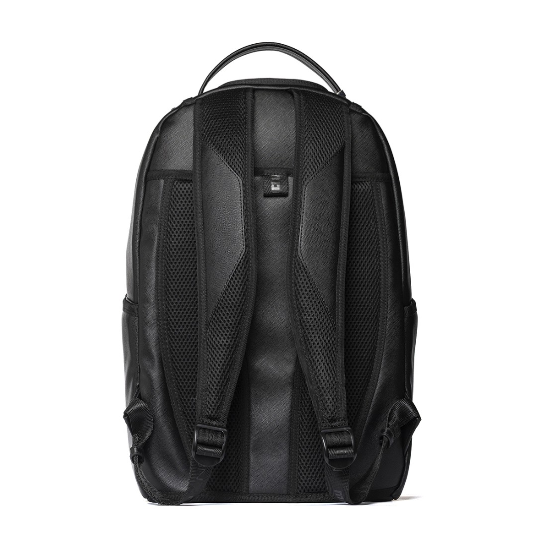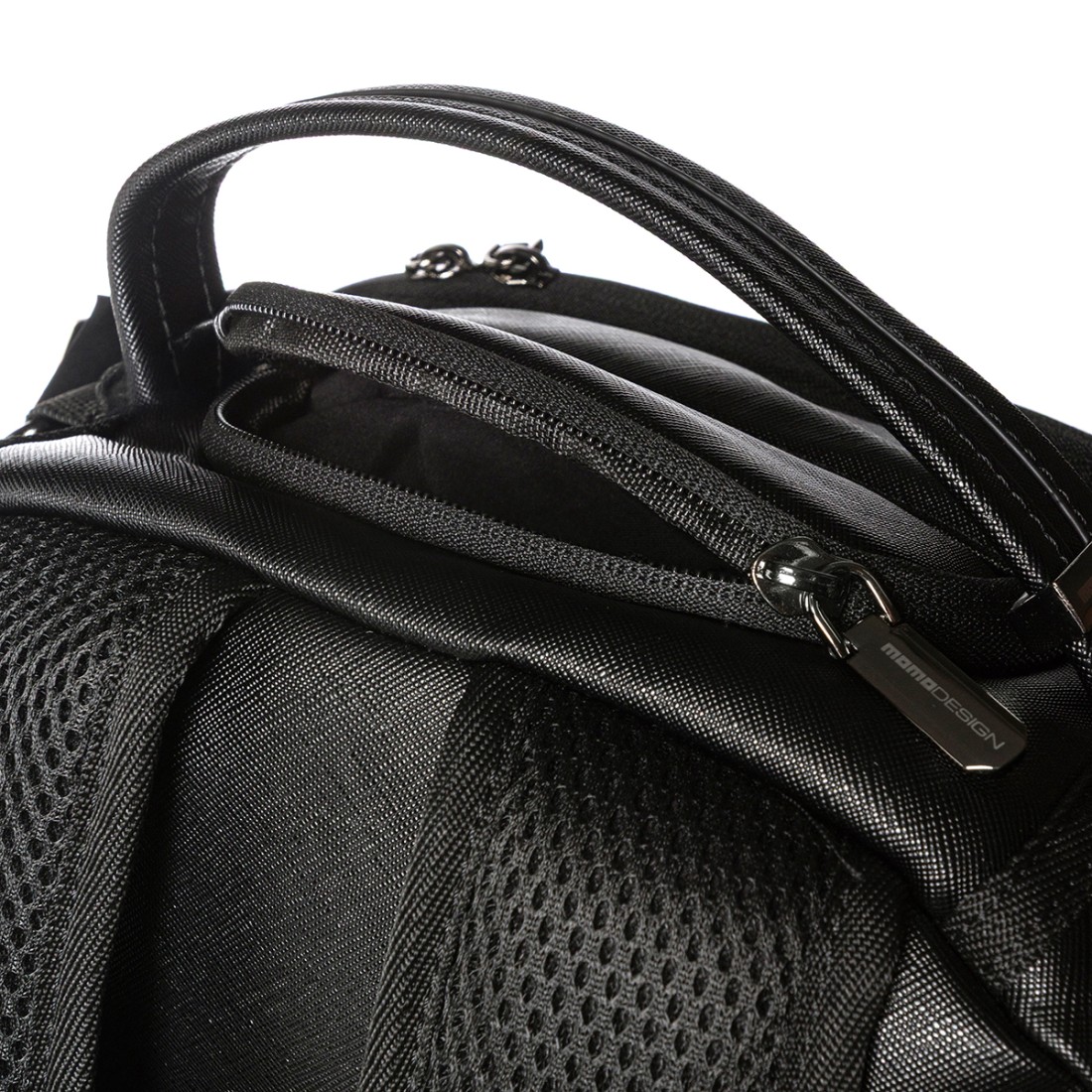 Momodesign men's faux leather backpack with a stylish and functional single-color design. The double-zip main compartment offers ample space and interior slip pocket, while the exterior features a zippered pocket and two open side pockets. Padded and adjustable shoulder straps, handle and trolley attachment make it perfect for work, travel and school.