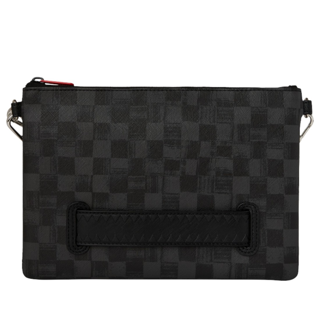 Clutch bag Sprayground Graffiti Check Shark Crossbody: refined street style with black check print and iconic graffiti effect shark mouth. Compact, lightweight and versatile, carry by hand or over the shoulder. Perfect for urban outfits, events or everyday use. Must-have for those who like to stand out.