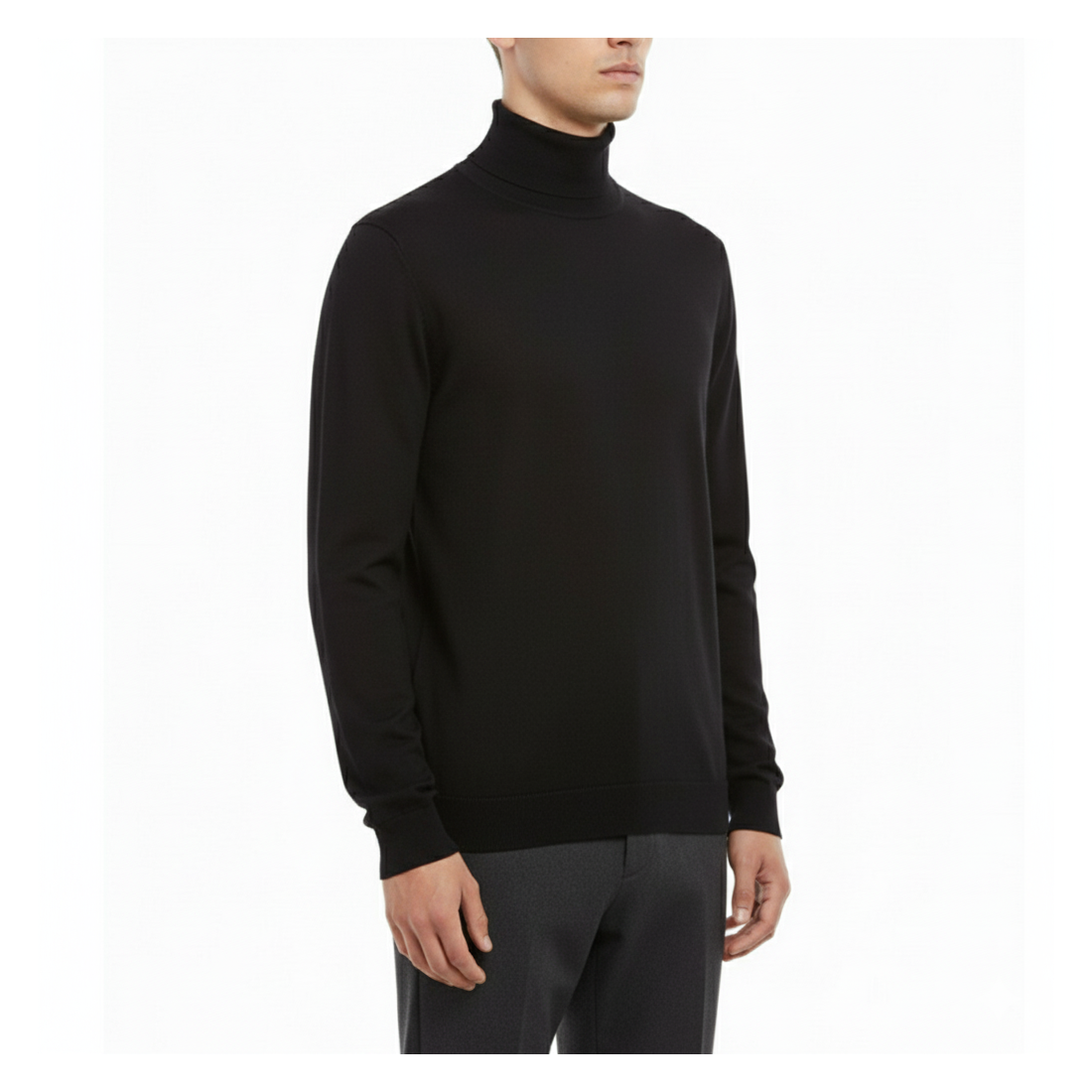 Bottega Cinque black wool-blend turtleneck with a stylish and comfortable design. Made from a combination of polyester, nylon, acrylic and merino wool, it offers warmth and softness ideal for the cold season. Elasticized hems ensure a regular and precise fit, perfect for a polished and versatile style suitable for any occasion.