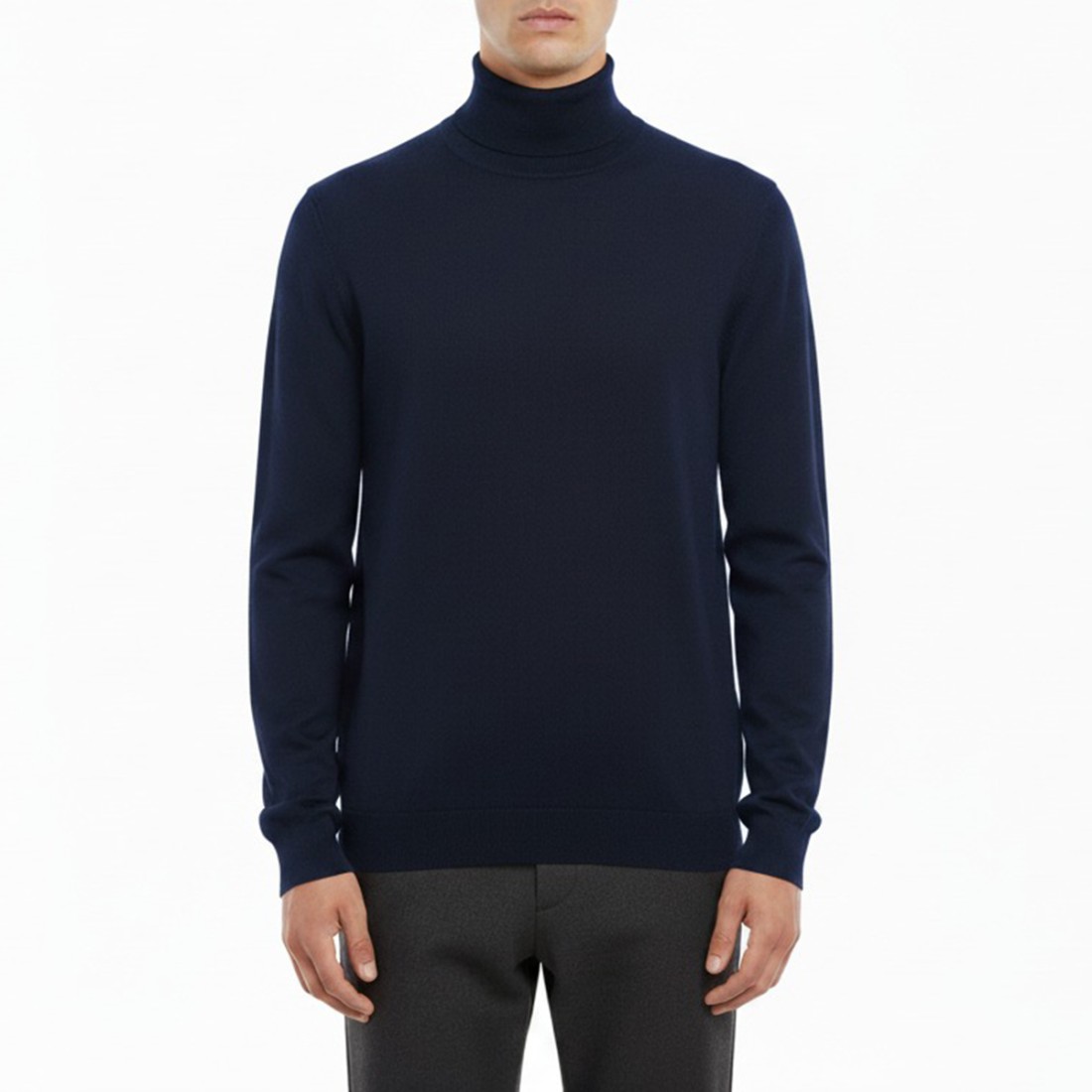 Bottega Cinque blue wool-blend turtleneck with an elegant and comfortable design. Made from a combination of polyester, nylon, acrylic and merino wool, it offers warmth and softness ideal for the cold season. Elasticized hems ensure a regular and precise fit, perfect for a polished and versatile style suitable for any occasion.Our customer service is available Monday through Saturday from 10:00 AM to 7:30 PM