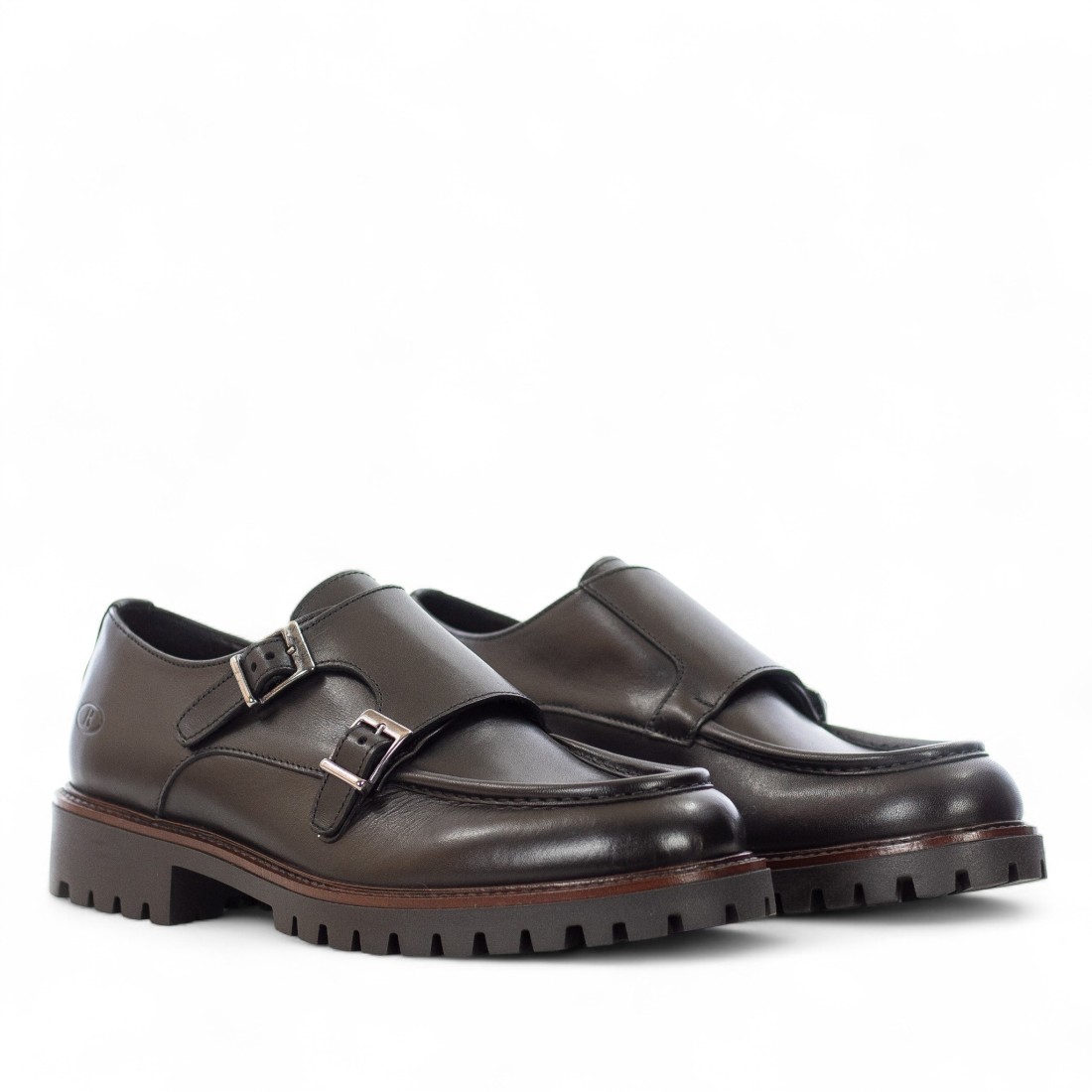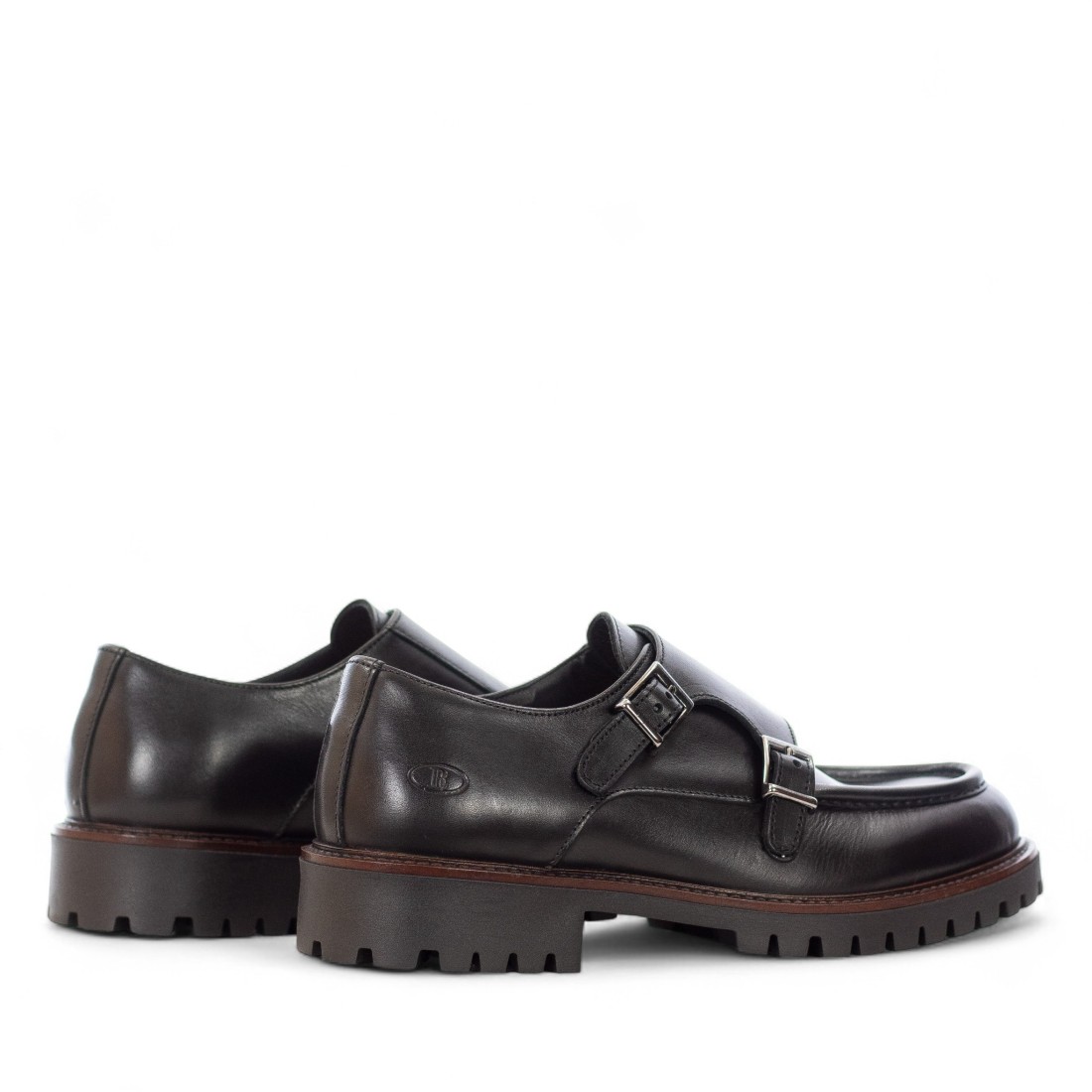 Loafer rogal's men's black leather, with double front buckle and 30 mm high rubber bottom. The lining and insole, both made of leather, ensure comfort and breathability. Elegant and with a strong character, this model stands out for its attention to detail and the logo stamped on the side, a symbol of style and quality.