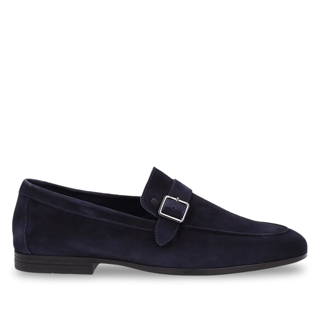 Loafer stylish with side buckle, an understated detail that enhances a clean, modern style. Made of soft blue suede leather, it offers a comfortable, lightweight fit. Semi-lined leather interior with leather footbed for natural comfort. TPU sole is flexible and durable. Ideal for work, ceremonies, and occasions where a polished look is required in mid-season.Our customer service is available Monday through Saturday from 10:00 AM to 7:30 PM