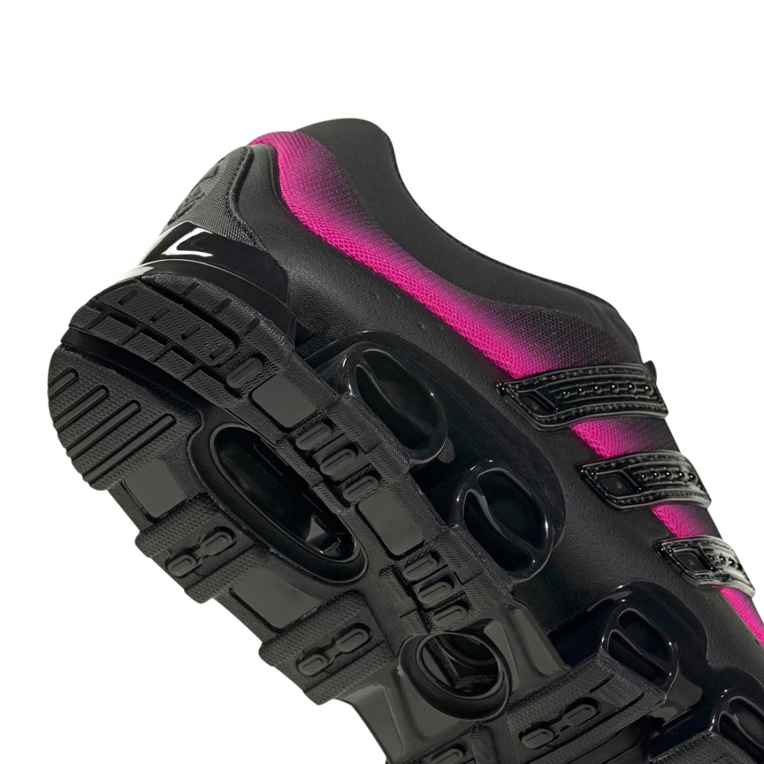 Megaride shoes from adidas bring a historic running silhouette back to the street with a bold look. The tunnel midsole provides responsive cushioning and unmistakable style, while the breathable mesh upper with fuchsia details lends lightness and character. Grippy rubber outsole and padded neoprene collar complete a model designed to stand out every day in the city.