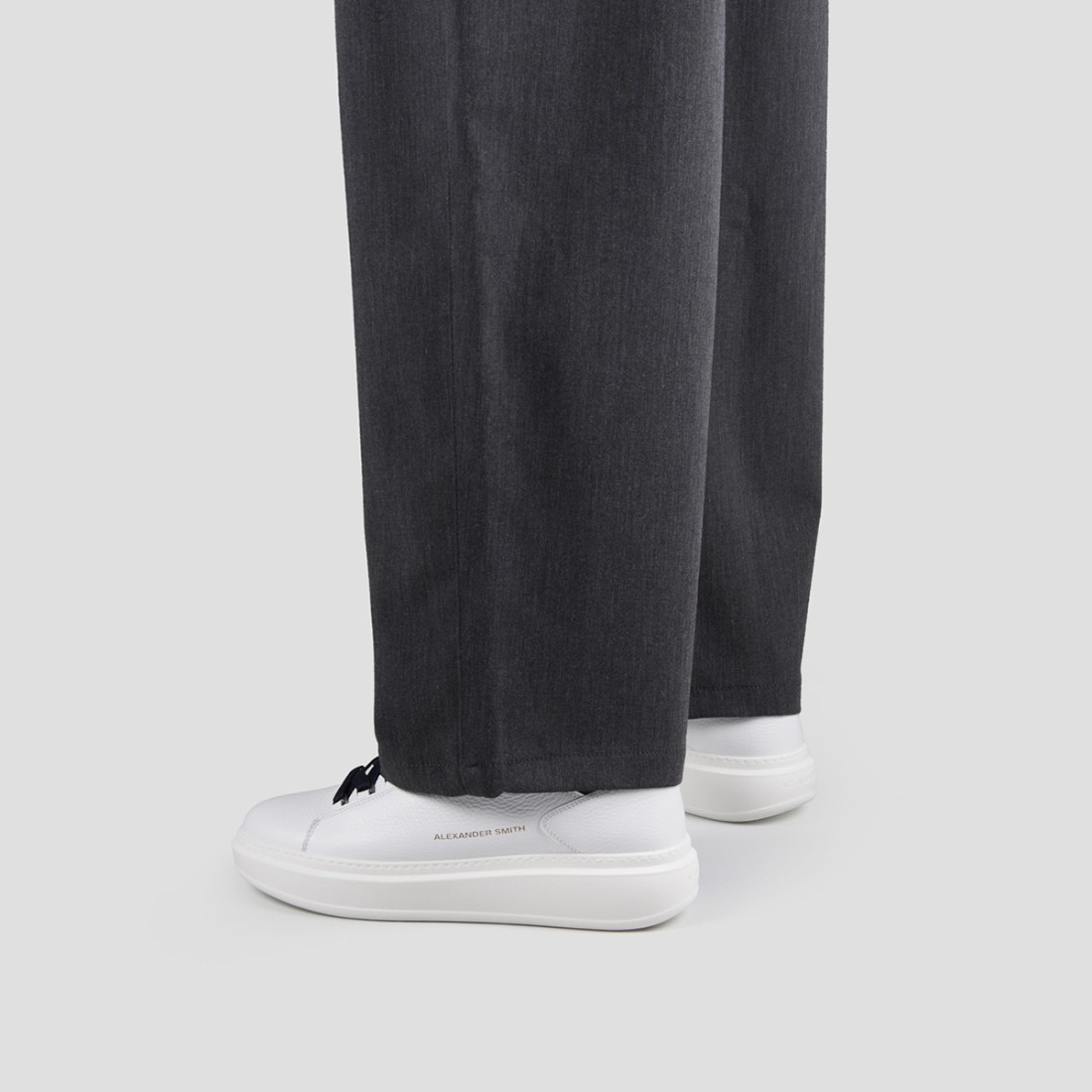 The Alexander Smith Wembley is inspired by the iconic Wembley Stadium, recalling its character and prestige. Sportiness and elegance meet in a balanced, versatile model perfect for any occasion. White grained leather upper with contrasting blue patch, unlined construction, logo on the side and in the back loop. Removable insole and 40 mm high sole complete the design.