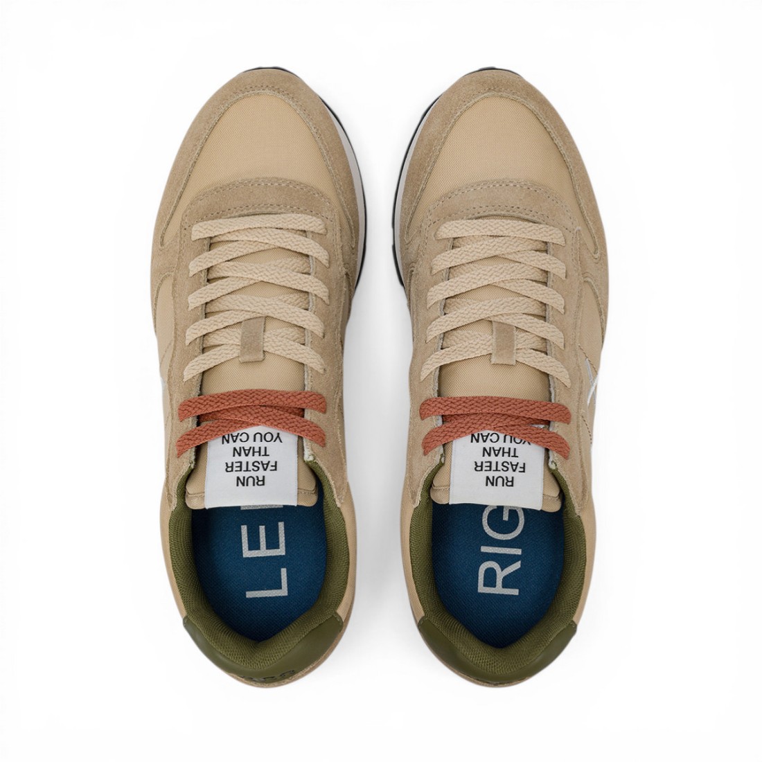 Tom is the signature running sneaker from SUN68 that combines style and comfort for any occasion. Made of beige nylon and suede with green faux leather back insert, it features cotton laces, embroidered logo on the side and breathable micro mesh lining. The hand-milled EVA sole with rubber tread ensures lightweight and grip, perfect from office to leisure.Our customer service is available Monday through Saturday from 10:00 AM to 7:30 PM