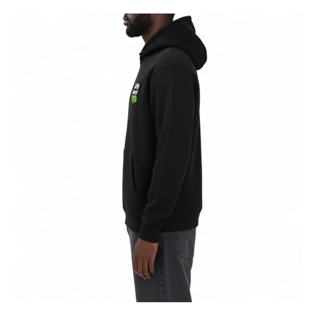 Black men's MARKET hooded sweatshirt with a regular fit. Features a print on the chest and a maxi print on the back for an urban, contemporary style. Featuring side pouch pockets, it is made of soft cotton with ribbed cuffs and hem. Perfect for a casual and versatile look.