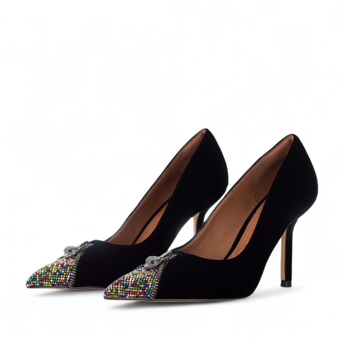Elegant Kurt Geiger London stiletto heels in soft suede leather. The lightly padded toe design enhances the silhouette, while the reinforced counter heel provides stability and comfort. The leather lining and insole provide a pleasant fit, preventing chafing and odor. A refined and feminine model, perfect for adding a touch of class to any occasion.