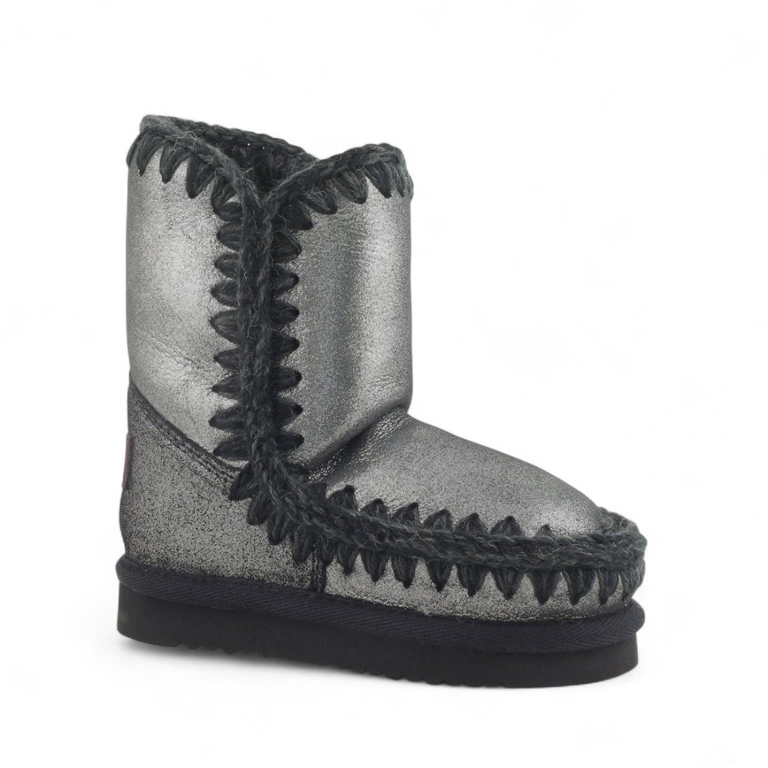 Discover the Eskimo Kid ankle boot from Mou in black microglitter leather, an exclusive model made with crochet stitching and soft double-face sheepskin lining. The stitched logo on the back and rubber sole ensure comfort and authentic style, perfect to complete any winter look with elegance and uniqueness.Our customer service is available Monday through Saturday from 10:00 AM to 7:30 PM