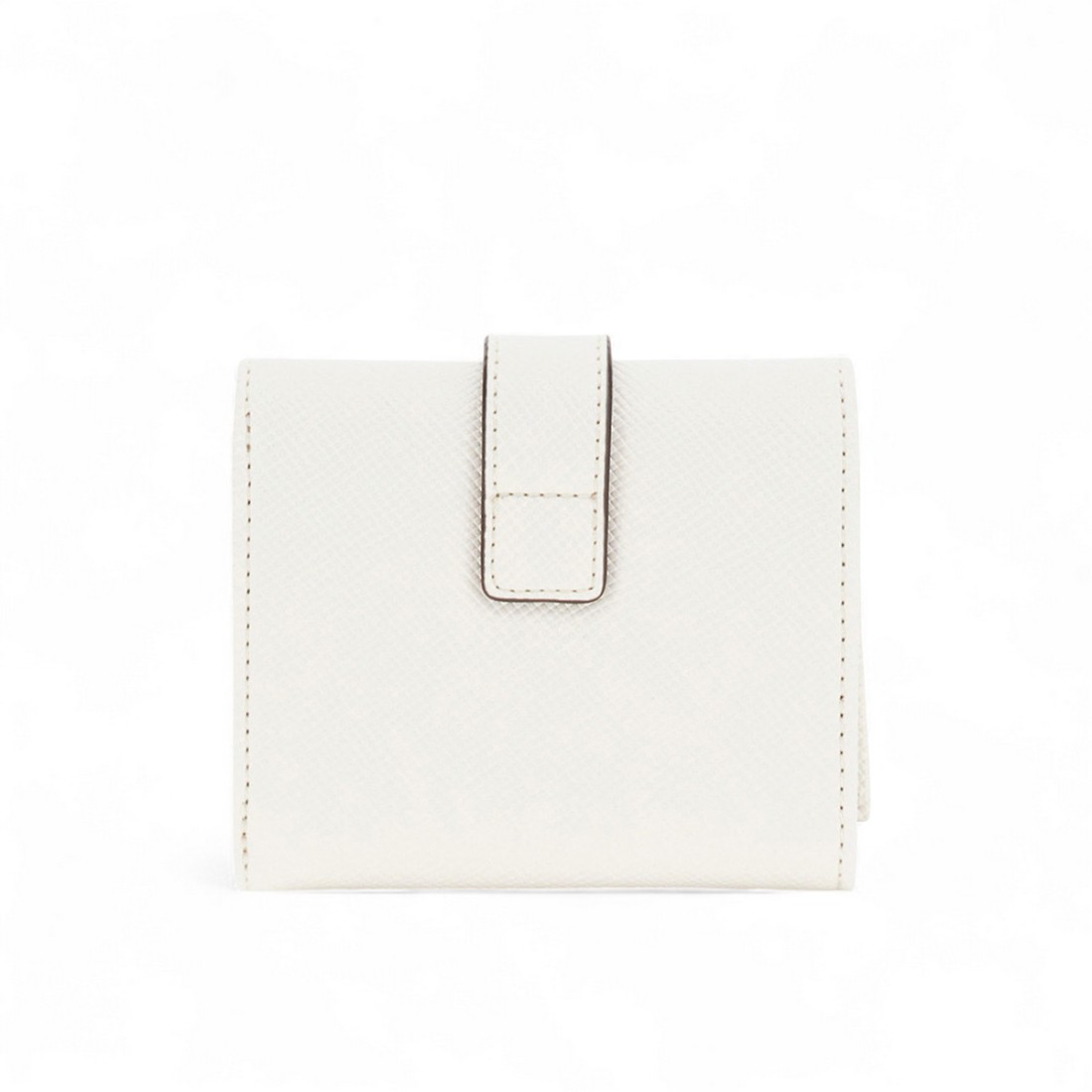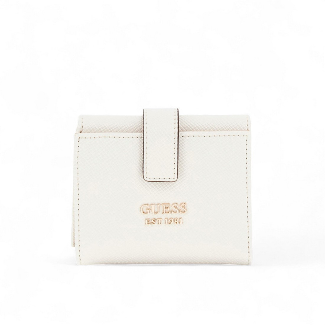 GUESS Rosalba mini wallet in black faux leather with elegant saffiano workmanship and pale gold metalwork. Features zipper closure, main compartment with interior coin pocket and credit card slot. Front metal logo. Compact size 11x9x2 cm, ideal for practicality and style.Our customer service is available Monday through Saturday from 10:00 AM to 7:30 PM