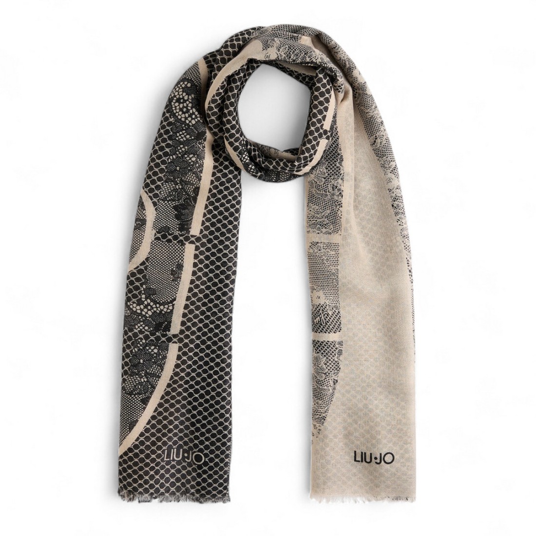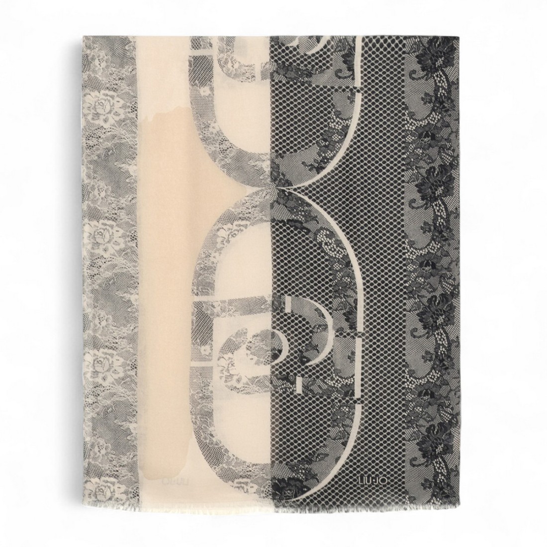 LIU JO neutral beige polyester stole is elegant and versatile, ideal for completing any look with a touch of style. The refined logo lace pattern adds a distinctive and feminine detail. Soft and lightweight, it measures 70x180 cm and is perfect to wear in any season to enhance casual or elegant outfits.Our customer service is available Monday through Saturday from 10:00 AM to 7:30 PM