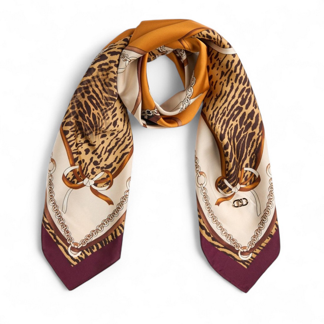LIU JO scarf made of 97% polyester and 3% elastane fabric. The animal patchwork pattern with logo adds a unique and sophisticated touch of style. Perfect for completing elegant or casual looks, this 90x90 cm printed scarf is a versatile accessory that lends personality and sophistication to any outfit.