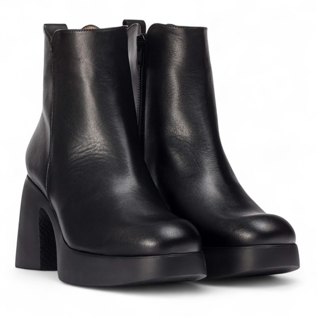 Ankle boot Wonders in soft black leather, perfect for elegant and refined looks. The approximately 80mm high heel ensures comfort stability and style. Leather lining and insole ensure breathability. Convenient side zipper for easy fit and embossed logo on the back. Rubber bottom for excellent grip.