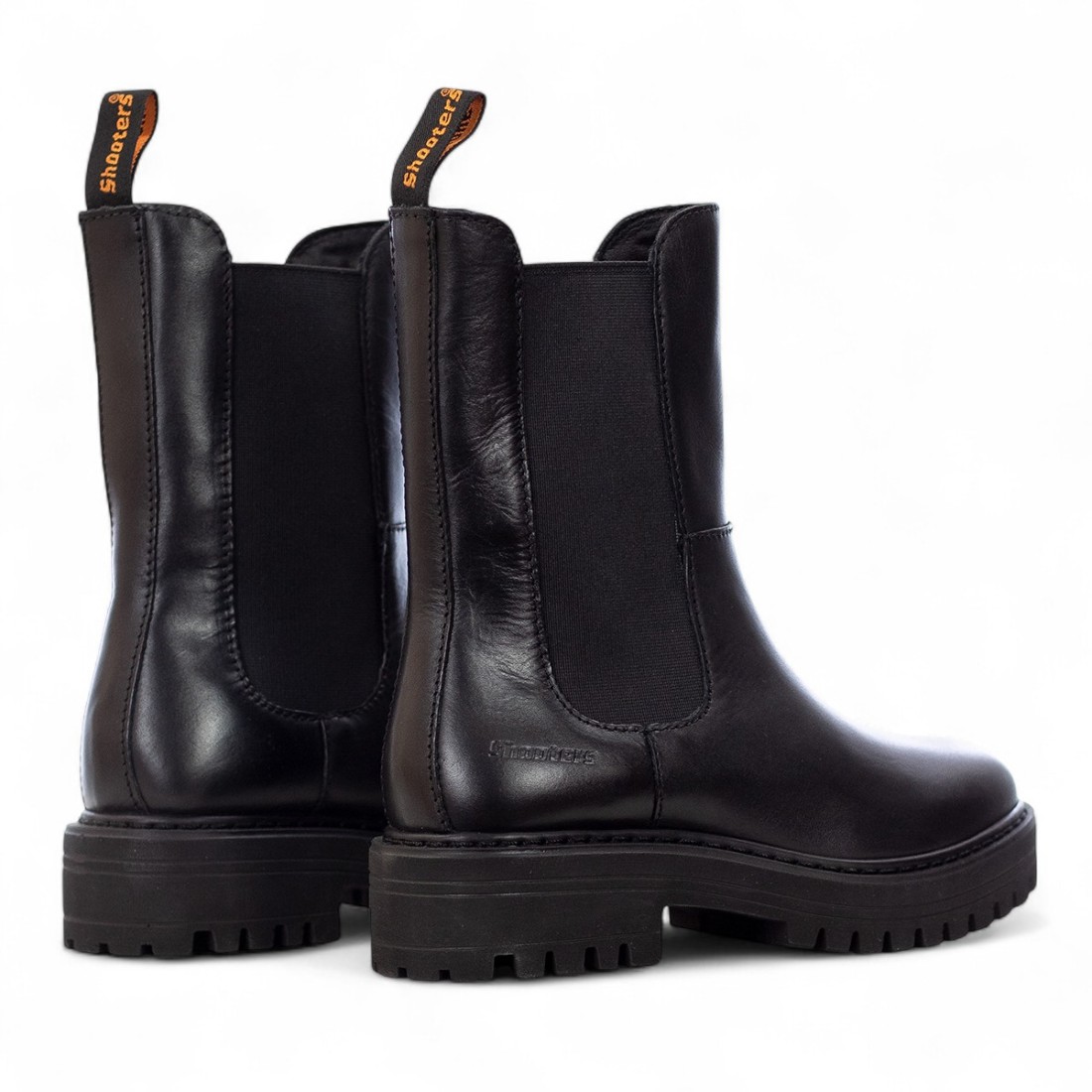 Women's black leather Beatles with a versatile and contemporary design. Comfortable and easy to wear thanks to the elastic inserts on the sides. High 55 mm bottom gives momentum without sacrificing comfort, while fabric lining and insole ensure breathability. Rubber outsole for stable and secure walking.