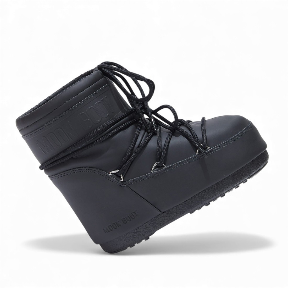 Discover the Moon Boot ProTECHt Icon Low Black: a perfect blend of style and functionality. Made of 100% water-repellent rubber, with a slip-resistant sole and insulating padding, they offer comfort and protection in all conditions. Genderless design inspired by the iconic 1969 lunar landing, with futuristic details such as PVC trim, metal eyelets and crisscross laces. Ideal for those seeking uncompromising durability and style.Our customer service is available Monday through Saturday from 10:00 AM to 7:30 PM