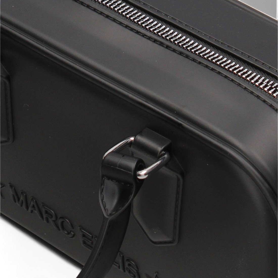 Elegant black pvc handbag Marc Ellis with tone-on-tone embossed logo on the front. Features double pvc handles and adjustable and removable logo fabric shoulder strap. Zipper closure and silver details for a sophisticated touch. Size 35x25x9 cm, perfect for adding style and class to any everyday look.