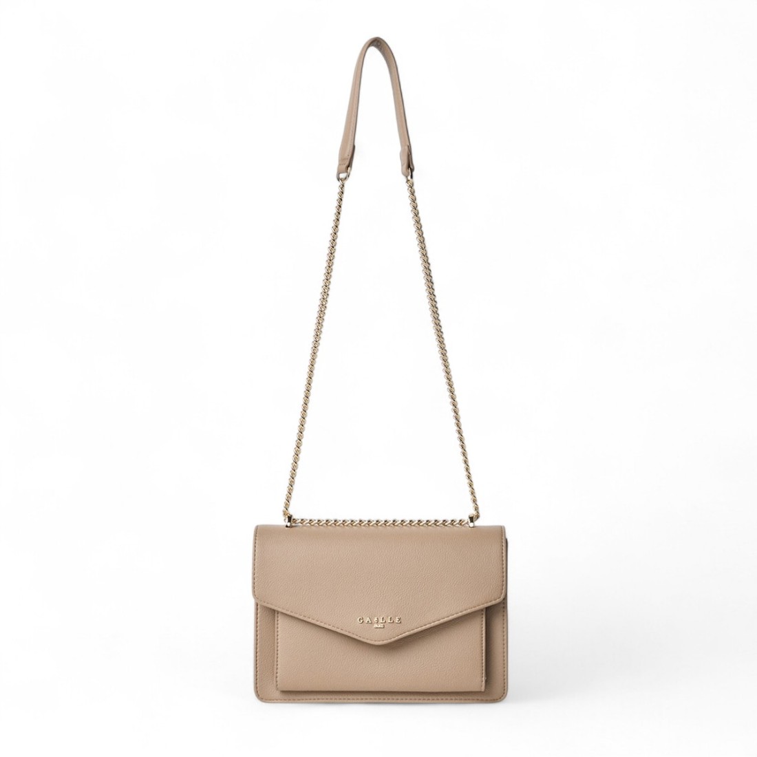 Shoulder bag made of tumbled material with a stylish and versatile design. Made of 100% polyurethane, it features a soft texture and compact structure. The camel color gives a sophisticated touch, perfect for any occasion. Dimensions: 24 x 16.5 x 9.5 cm. From the Fall/Winter 2025 collection by Gaëlle Paris.Our customer service is available Monday through Saturday from 10:00 AM to 7:30 PM