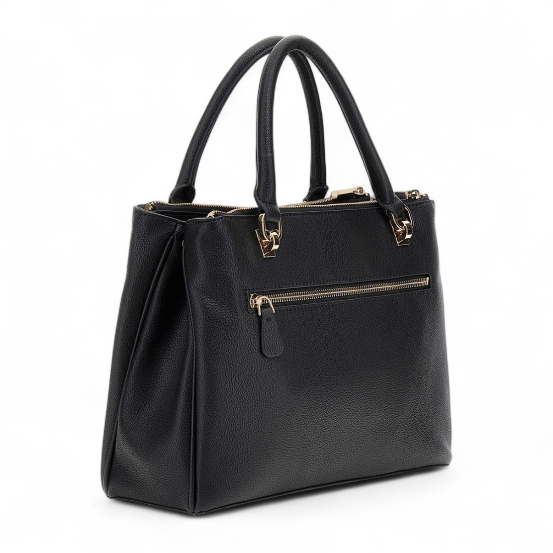 The Guess Black Women's Shoulder Bag combines elegance and practicality for the modern woman. Made of grained faux leather with embossed 4G maxi logo and light gold metallic details, it has double handles and adjustable/removable shoulder strap. Zipper closure, lined interior with multiple compartments and multifunctional pockets. Dimensions: Width ~32 cm, Height ~25 cm, Depth ~12 cm, maximum shoulder strap length ~55 cm.