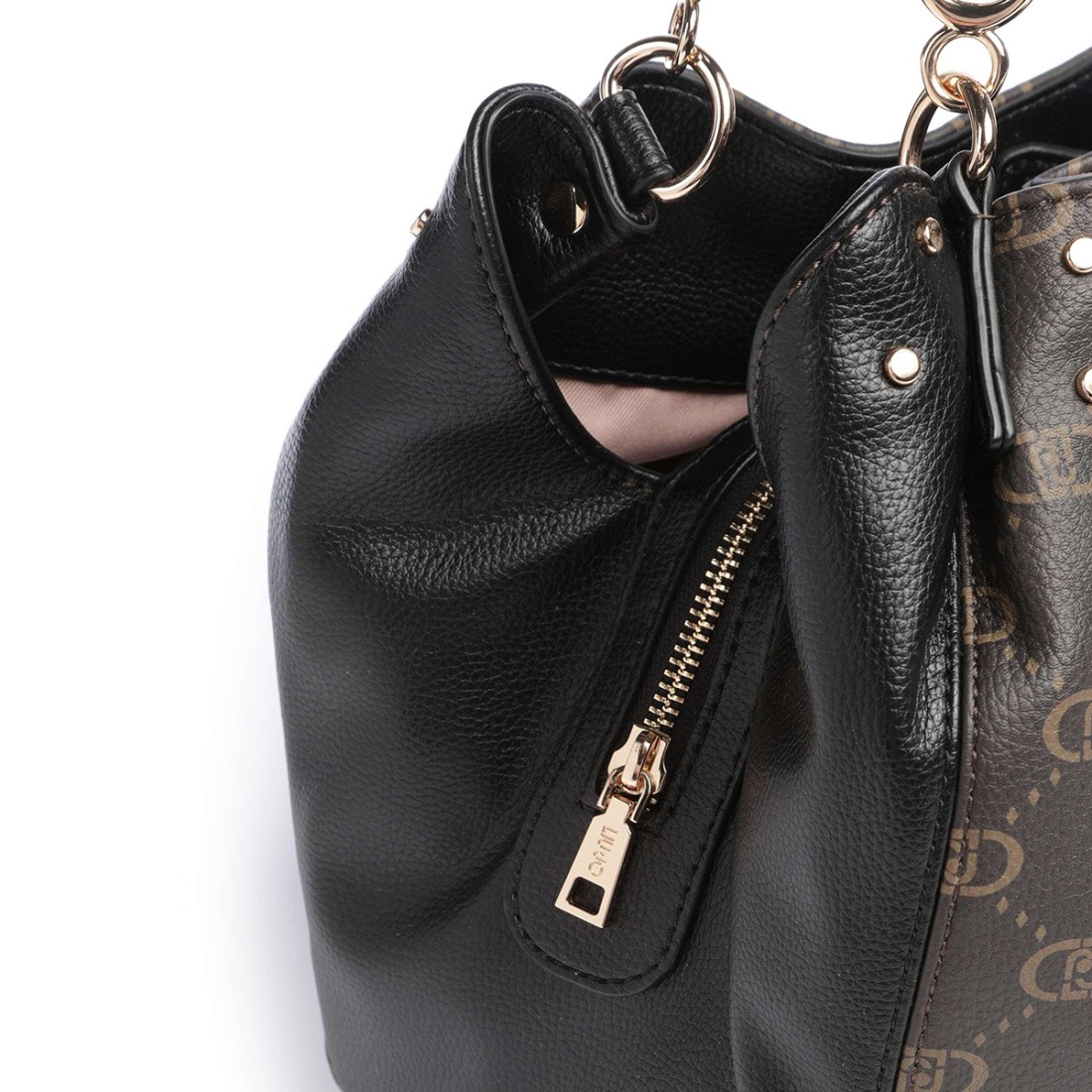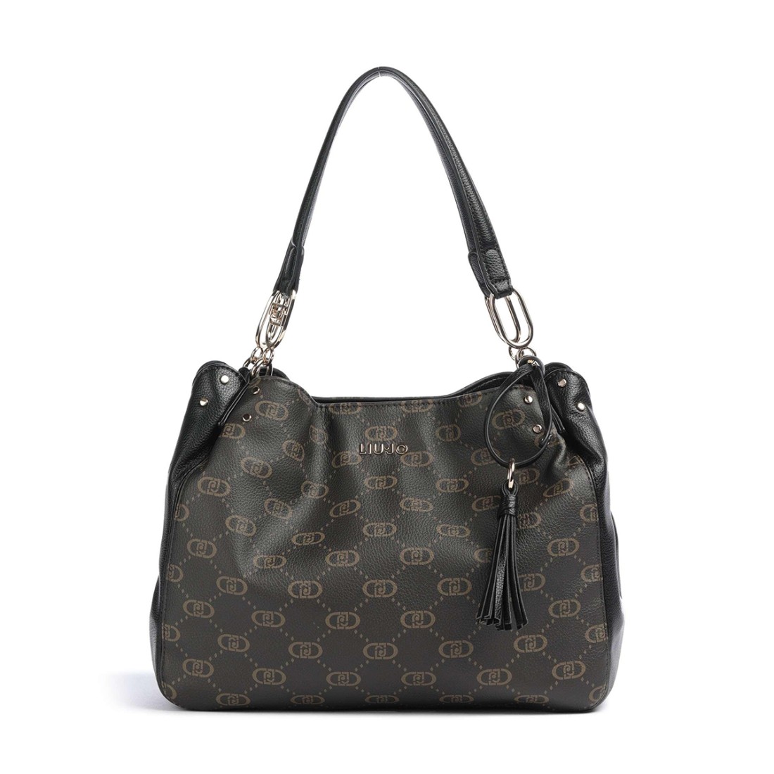 Elegant LIU JO medium shopping bag made of faux leather with a tumbled effect. Featuring a metal logo print, it has comfortable handles and a tassel charm. It has two compartments, one of which is zippered, and a practical zippered inside pocket. Size 32 x 14 x 26 cm, ideal for any occasion with style and functionality.Our customer service is available Monday through Saturday from 10:00 AM to 7:30 PM
