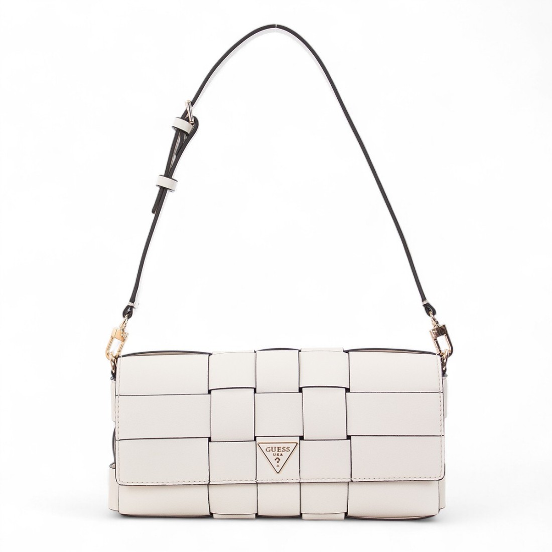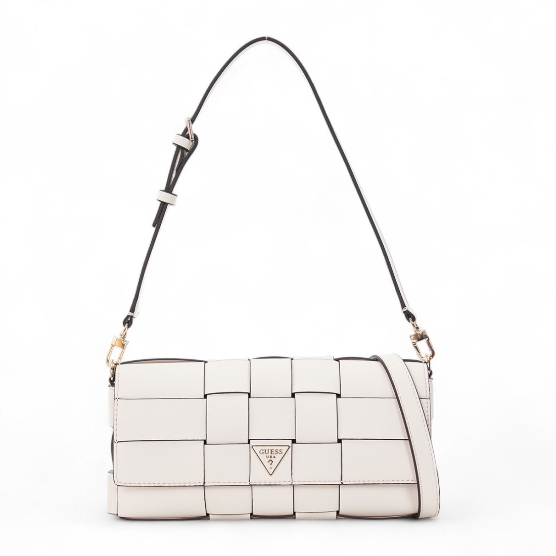 Small hand bag Guess made of synthetic leather, elegant and versatile. Features flap with magnetic closure, adjustable handle and detachable shoulder strap with adjustment. Internally lined, with zippered pocket and 3 card compartments. Measurements: width 27 cm, height 14 cm, depth 5 cm. Adjustable belt from 111 to 129 cm, handle from 60 to 66 cm.Our customer service is available Monday through Saturday from 10:00 AM to 7:30 PM
