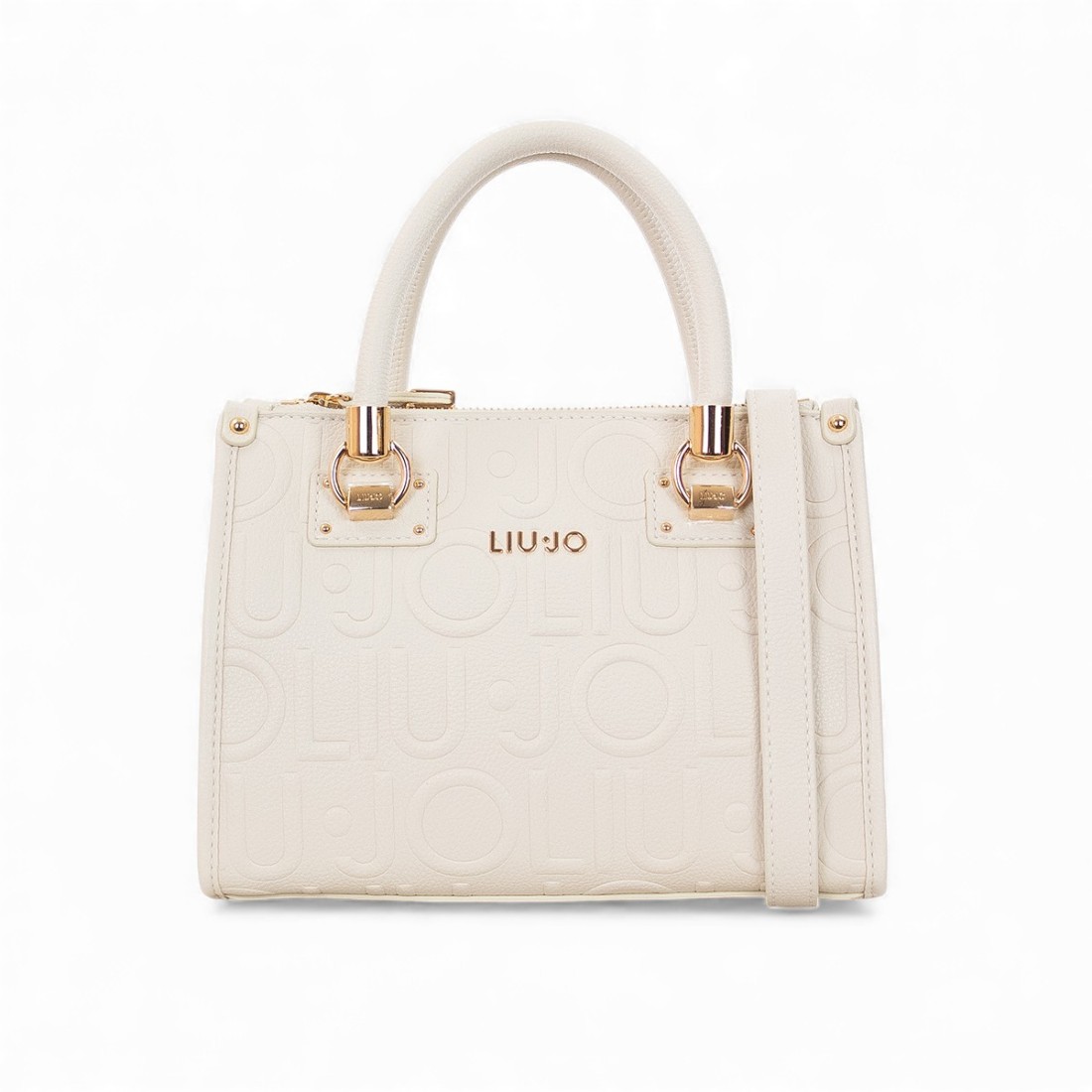 Small purse Liu Jo in white color, made of soft natural imitation leather. Compact yet functional, it offers one main compartment with magnetic clip closure, three zippered pockets and one flat pocket. Measuring 24 x 20 x 10 cm, with 8 cm high handles and adjustable strap up to 112 cm, perfect for daily use without sacrificing style.