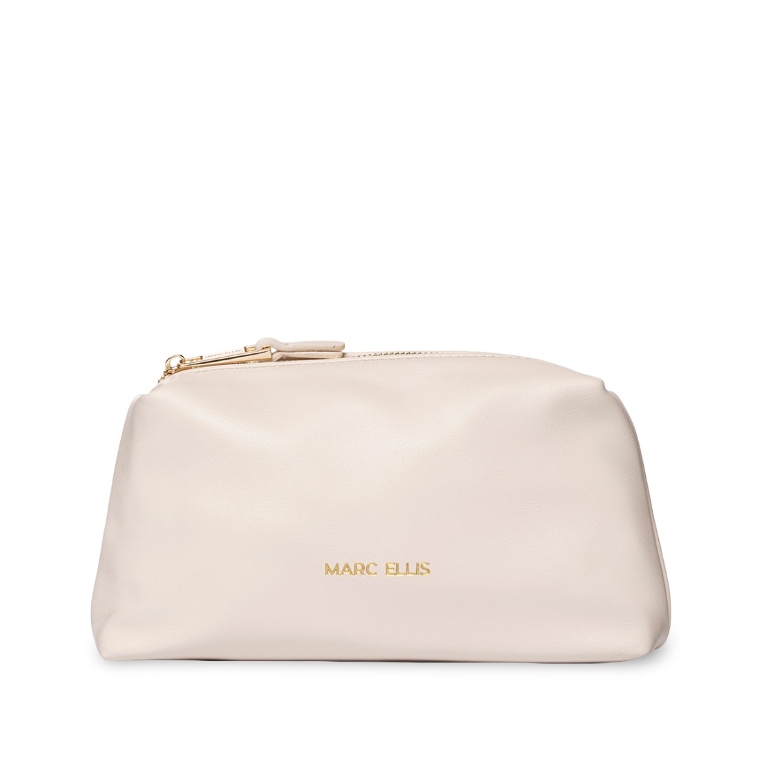 April Macro LT clutch bag by Marc Ellis, made of milk-colored faux leather with elegant lettering logo screen-printed on the front. Compact yet roomy, it is perfect for carrying your essentials in style. Equipped with a practical zipper closure. Dimensions: 24 x 12 x 7 cm. Ideal for both daytime and evening wear.