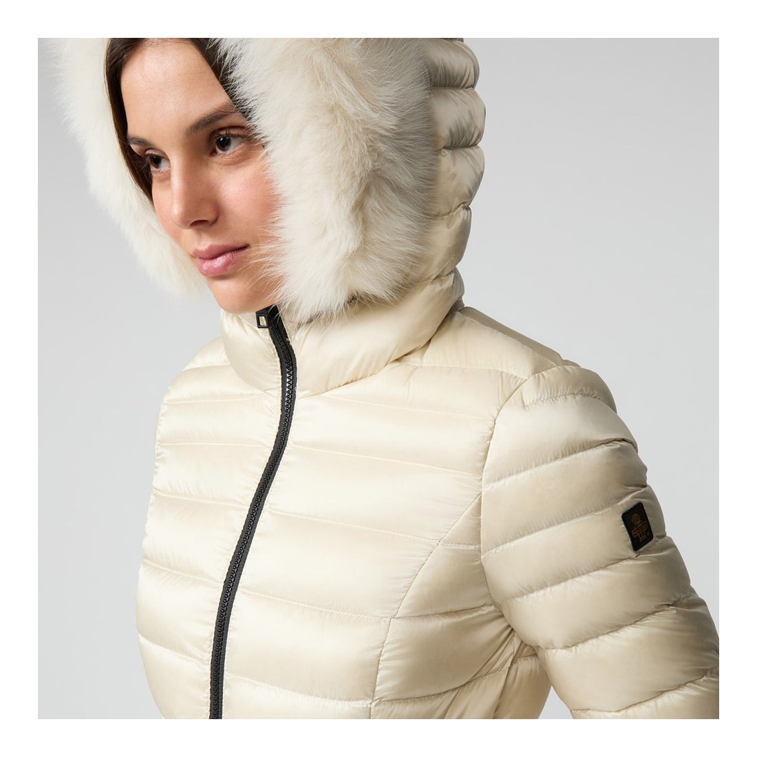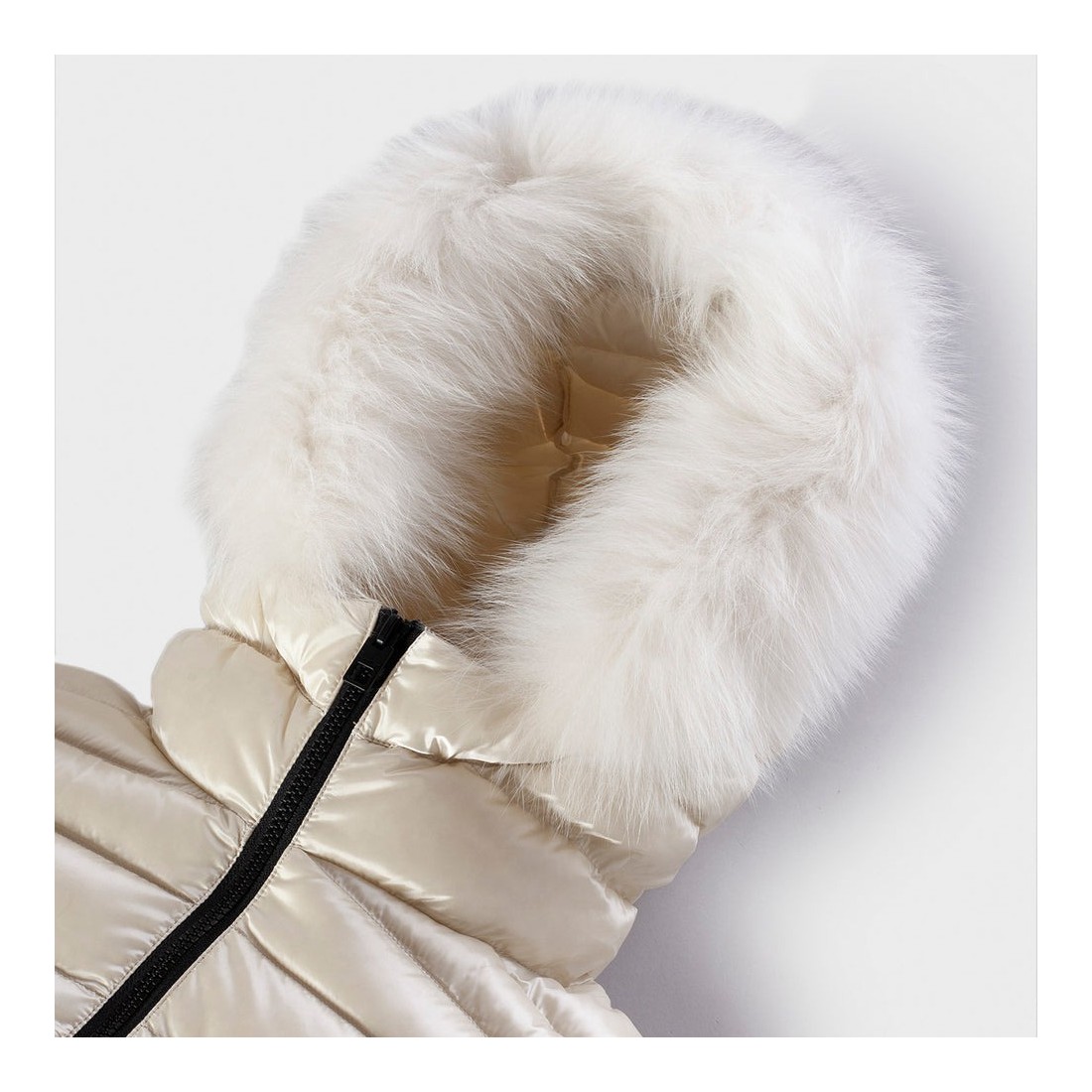Women's ¾ winter down jacket with fur, stylish and warm, perfect for facing the cold season in style. Direct-injected 100% down 90-10 filling ensures lightness and maximum comfort. The satin nylon outer fabric gives a feminine and modern touch. Practical, comfortable and a favorite of our customers, it is a real must-have for winter.