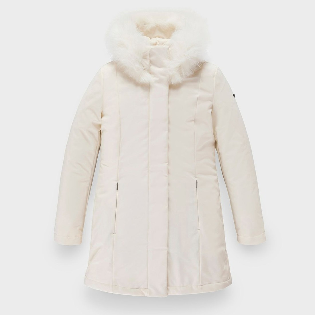 Women's soft-shell technical fabric parka with warm fur on the hood and RefrigiWear® Thermal Padding for optimal comfort on the coldest days. With a clean, modern design, it is a versatile garment perfect for any winter occasion. Slim fit: one size up is recommended for an ideal fit.