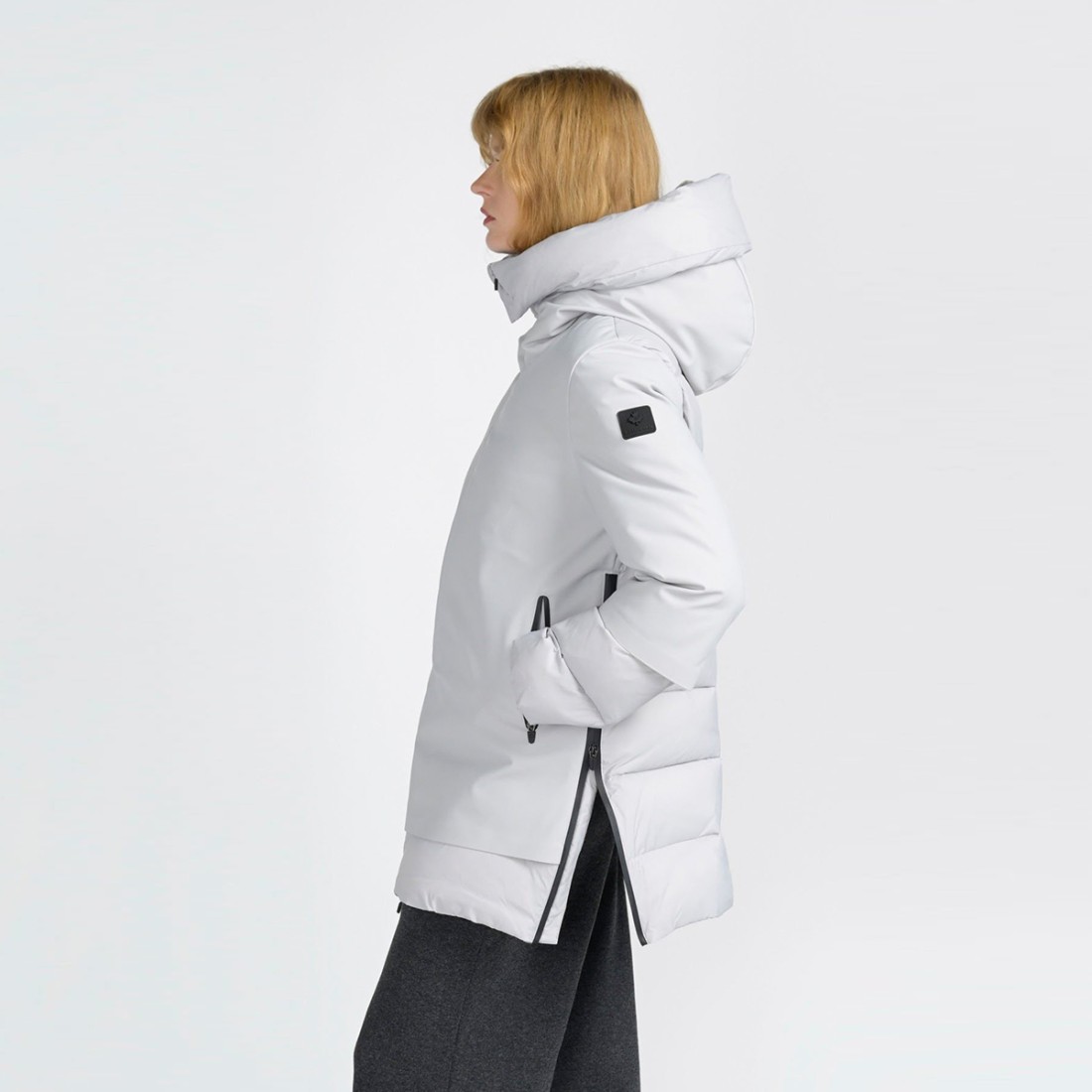 The Becancour Mid from Canadian, made of water-resistant Urban Lux light gray fabric, is the ideal outerwear to take on winter in style. Breathable 100% polyester padding ensures comfort even in subzero temperatures, while the metropolitan design with high collar and contrasting zipper adds a sophisticated touch to any urban look. Perfect with tailored pants or elegant skirts for an always flawless outfit.