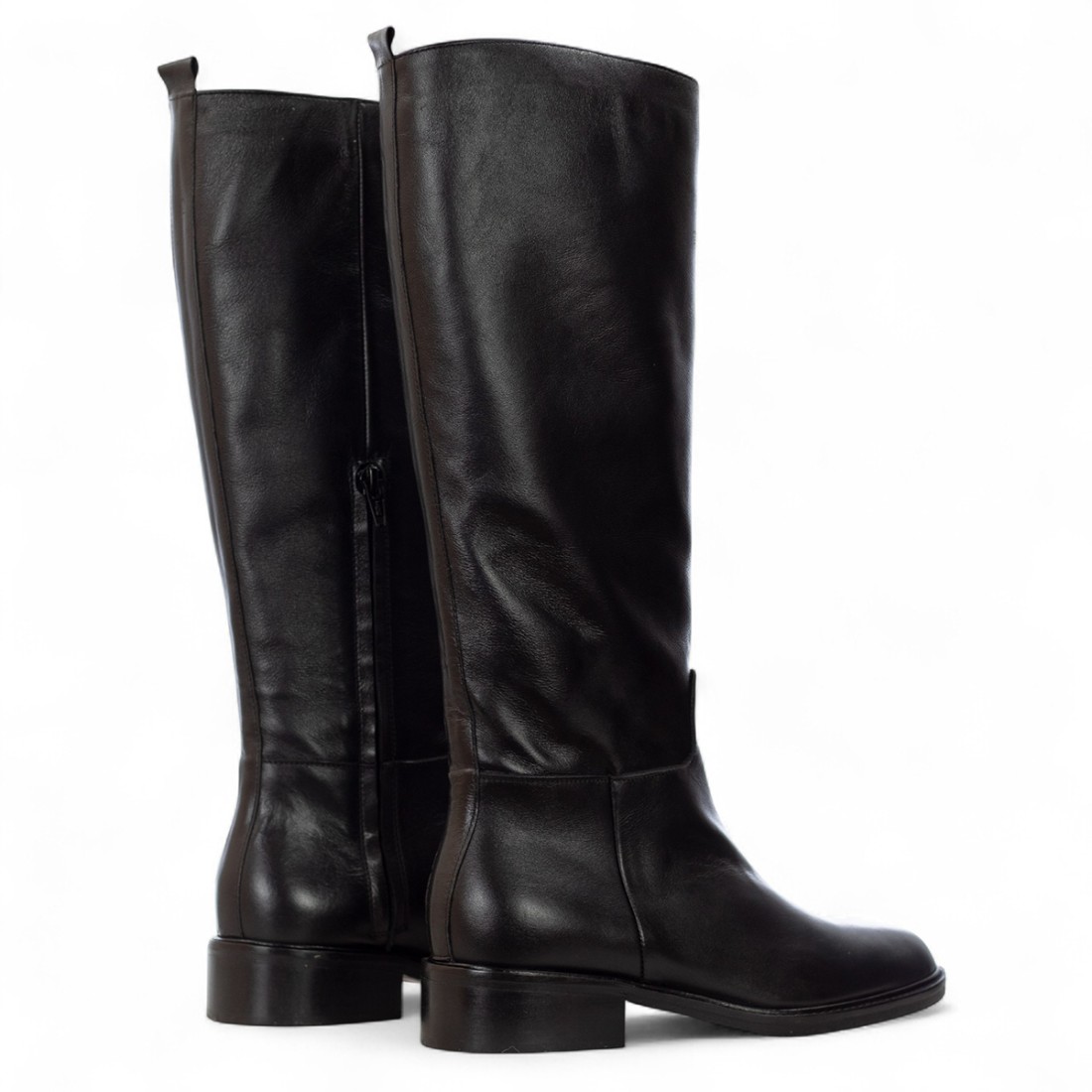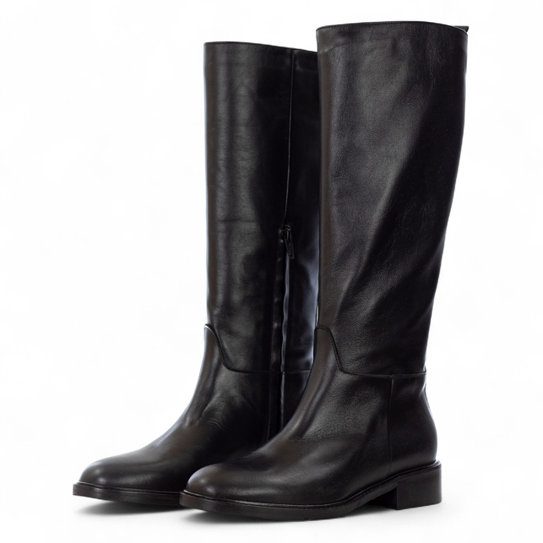 ARIA SHOES black leather boot, elegant and refined. With a 40mm heel and side zipper, it offers comfort and practicality. Leather lining and insole ensure breathability, while the rubber bottom ensures stability with every step. Perfect for stylishly completing chic looks on any occasion.