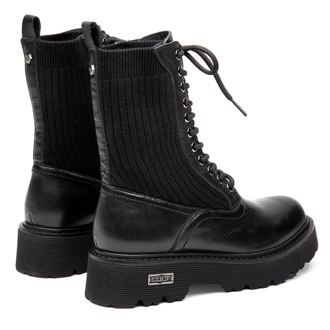 Combat boot black glam-rock style, with smooth leather upper and soft knit collar for instant comfort. Perfect for different seasons, it combines elegance and original details, making it versatile for casual or more sophisticated looks. The SLASH line brings character to every step.