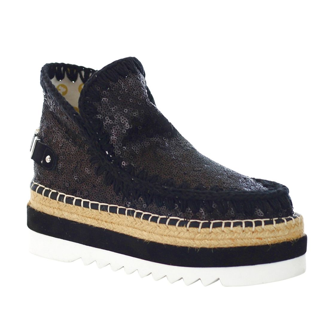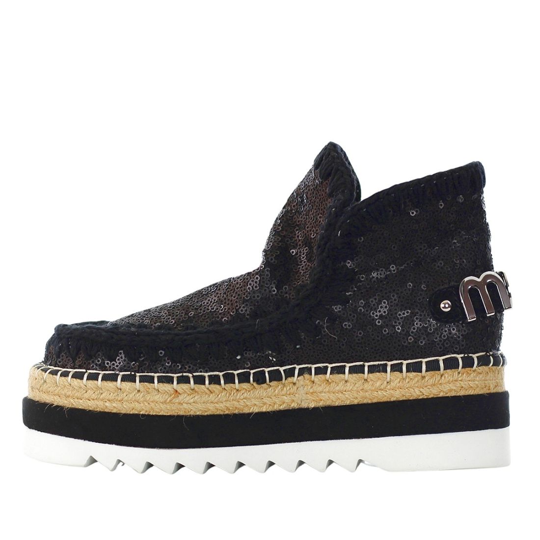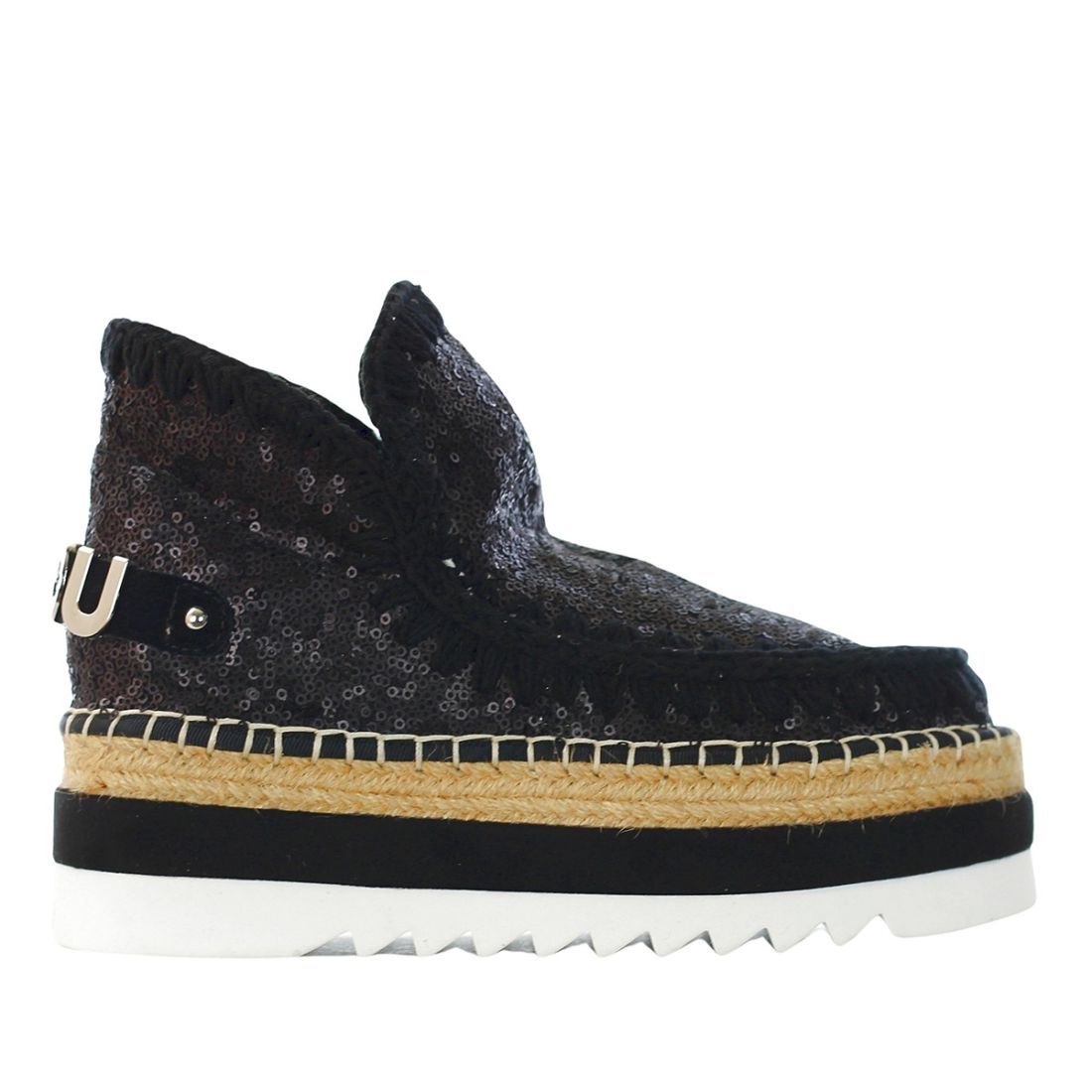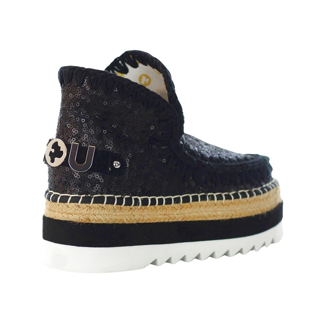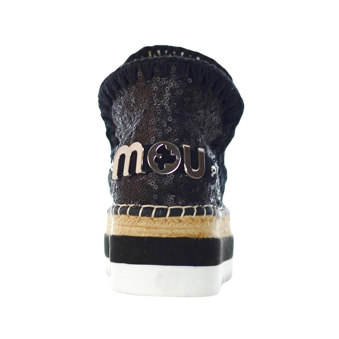 MOU - Charcoal black micropaillettes sneakers with crochet stitching and metal "MOU" logo on the back. Cotton canvas lining. 50mm rubber bottom. Art: MU.SW301003G/MSQCAR