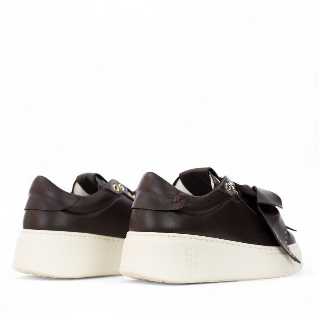 GIO+ - Brown leather sneakers with tone-on-tone leather back patch. Removable accessories on laces and lettering logo on tongue. 50mm rubber platform bottom.