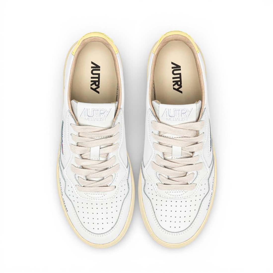 Autry Medalist Low in white leather, inspired by 1980s tennis, combines heritage taste and current style. Clean lines, micro-perforated toe for added breathability and everyday comfort. Yellow heel, jacquard detail and "Floating Dreams" side lettering sign the look. Versatile and timeless, perfect for every day.Our customer service is available Monday through Saturday from 10:00 AM to 7:30 PM