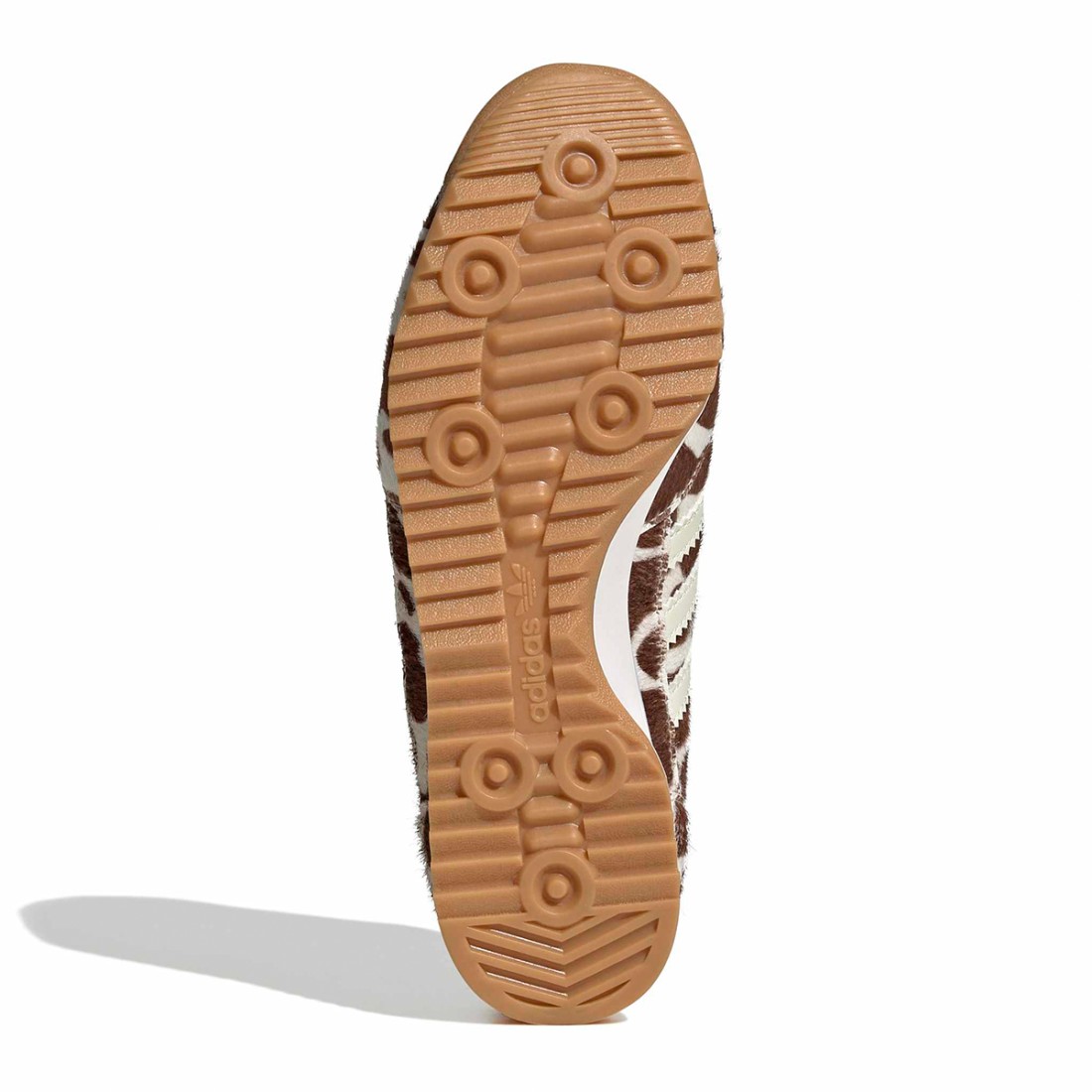 The adidas SL 72 OG Giraffe Print brings back an icon from 1972 with a contemporary attitude. The leather upper with a cow print pony-effect finish lends character and a premium feel, perfect for standing out every day. The low-profile design slims the silhouette, while the EVA midsole ensures lightweight comfort. Rubber outsole for reliable grip, lace-up closure, textured tongue and unmistakable Three Stripes complete the look.