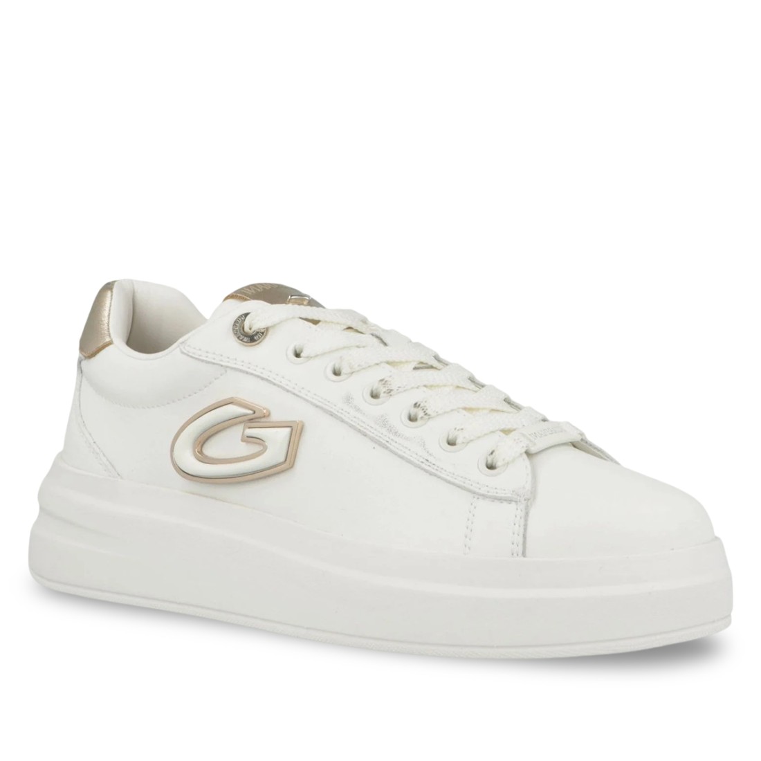 GUARDIANI Aeris sneakers in off-white leather are elegant and versatile. The design is enhanced by a gold laminated leather insert on the back and a monogram logo embossed on the side for a distinctive touch. Rubber bottom that ensures comfort and stability throughout the day. Ideal for completing casual and sophisticated looks.