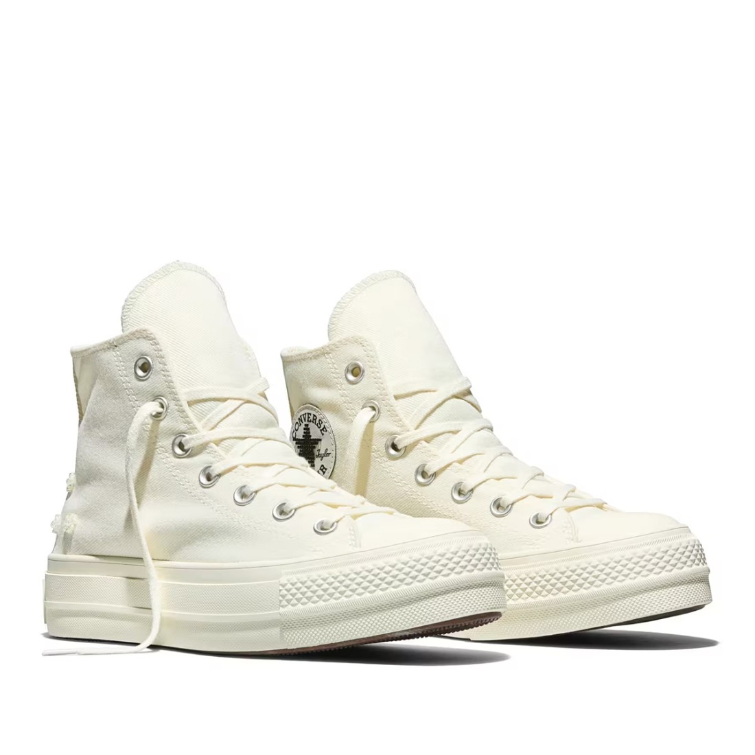 Sneakers Converse Chuck Taylor All Star Lift Platform in beige canvas, embellished with beaded appliqués on the back that add an original and feminine touch. The classic side logo completes the iconic design, while the rubber platform sole ensures comfort and momentum with every step. Perfect for adding character to your everyday looks.