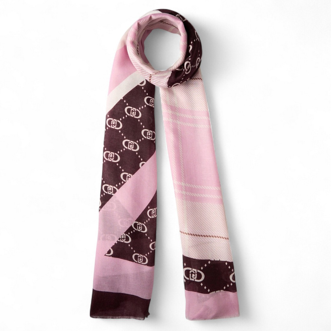 Elegante estola de LIU JO en aromático poliéster lila con un refinado estampado de cuadros y logotipo. Sus dimensiones de 70 x 180 cm la hacen perfecta para realzar cualquier look con estilo y ligereza. Los bordes deshilachados añaden un toque moderno y sofisticado, ideal para cualquier temporada.