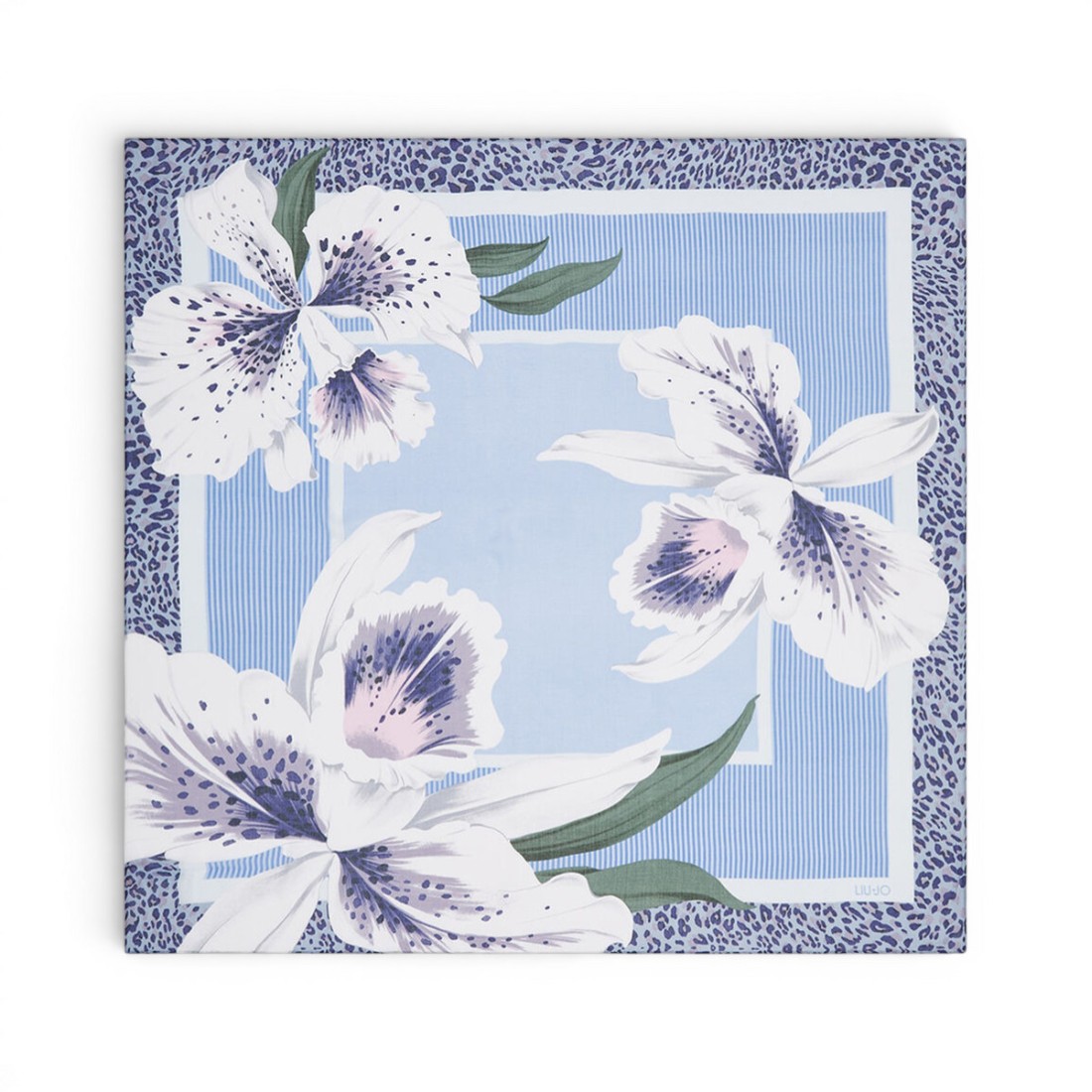 Fular de 120x120 cm confeccionado en tejido estampado con hilos de viscosa de color azul claro, suave y agradable al tacto. El estampado de orquídeas le da un toque elegante y femenino, perfecto para completar con estilo tanto looks informales como más refinados. Versátil y ligero, puede llevarse alrededor del cuello, sobre los hombros o utilizarse como accesorio para embellecer bolsos y conjuntos. Ideal en cualquier estación.Nuestro servicio al cliente está disponible de lunes a sábado de 10:00 a 19:30