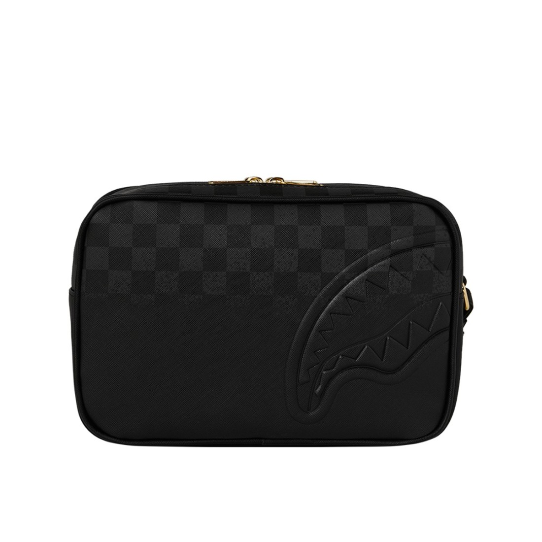 Un neceser de PVC negro de aspecto atrevido, con un estampado a cuadros a juego y la inscripción "SPRITZ BLACK" en la parte delantera. Práctico y resistente, dispone de un doble compartimento con cremallera para organizar mejor sus productos. Se completa con una correa de PVC extraíble. Dimensiones: 25 x 20 x 8 cm.Nuestro servicio al cliente está disponible de lunes a sábado de 10:00 a 19:30