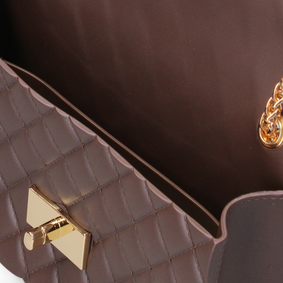 Bolso bandolera de PVC en color cacao con efecto acolchado con solapa y cierre de gancho giratorio con logotipo. La bandolera de cadena y PVC añade un toque moderno y refinado, perfecto para cualquier ocasión. Dimensiones compactas 20x11x6 cm, ideal para completar looks chic y contemporáneos con estilo y practicidad.Nuestro servicio al cliente está disponible de lunes a sábado de 10:00 a 19:30