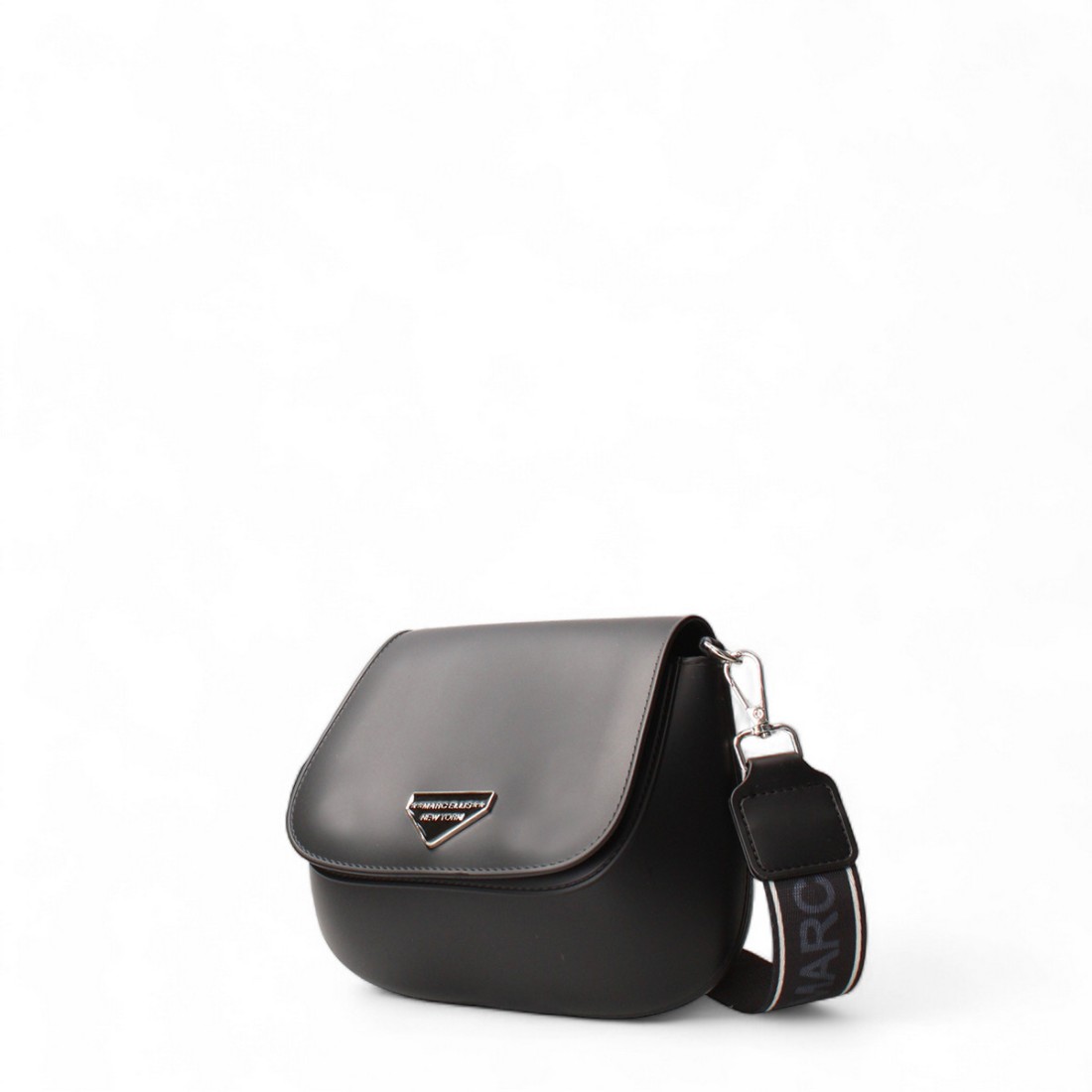 Elegante bolso bandolera Marc Ellis en pvc negro, adornado con una placa frontal con el logotipo y un ribete dorado. Equipado con bandolera extraíble en tejido con logotipo y práctico cierre de solapa con botón magnético. Perfecto para añadir un toque de estilo brillante a cualquier look, combinando diseño moderno y funcionalidad. Dimensiones 15 x 27 x 10 cm.Nuestro servicio al cliente está disponible de lunes a sábado de 10:00 a 19:30