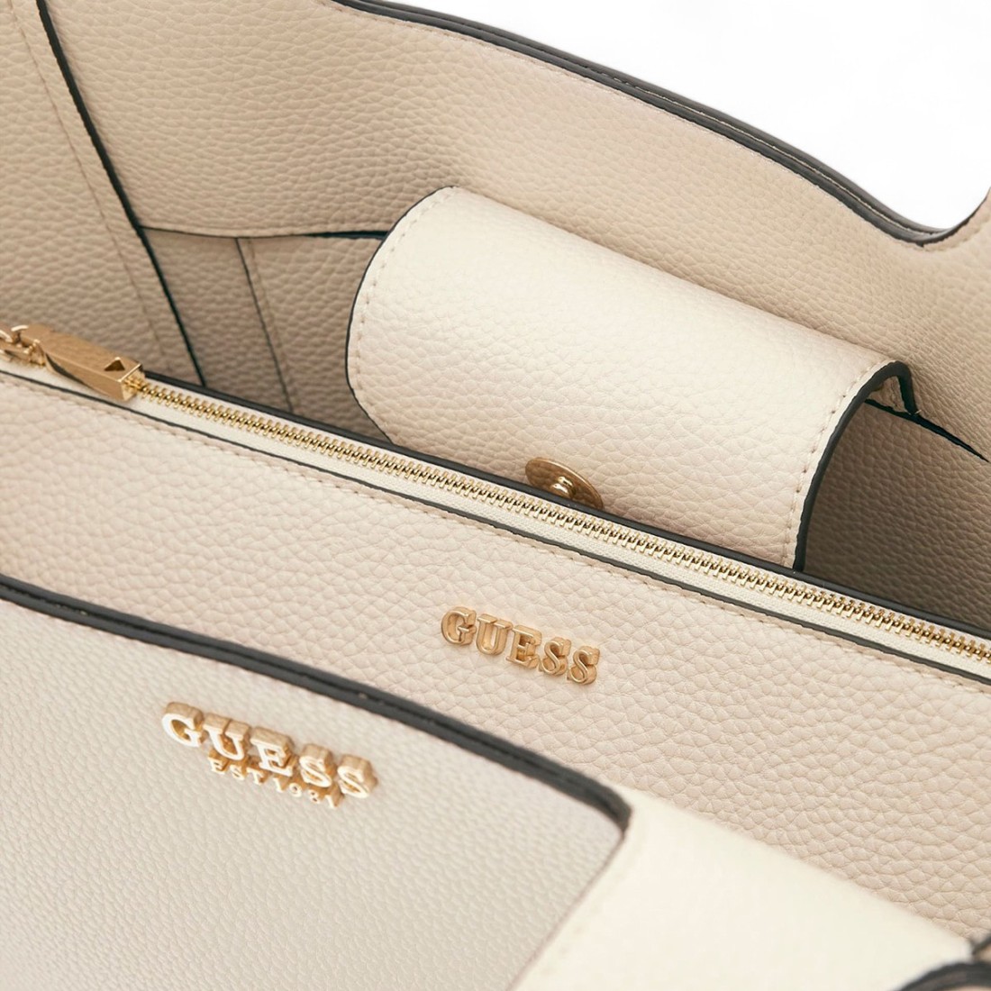 Bolso Guess en un elegante tono beige, fabricado en resistente polipiel natural. Con su diseño estructurado y compacto, es ideal para quienes buscan estilo y practicidad. Tiene un único compartimento con cremallera y un bolsillo interior plano para objetos pequeños. Las asas de 24 cm de altura permiten llevarlo cómodamente al hombro. Dimensiones: 26/45 x 26 x 13 cm. Cara dura, no apta para tamaños A4.Nuestro servicio al cliente está disponible de lunes a sábado de 10:00 a 19:30