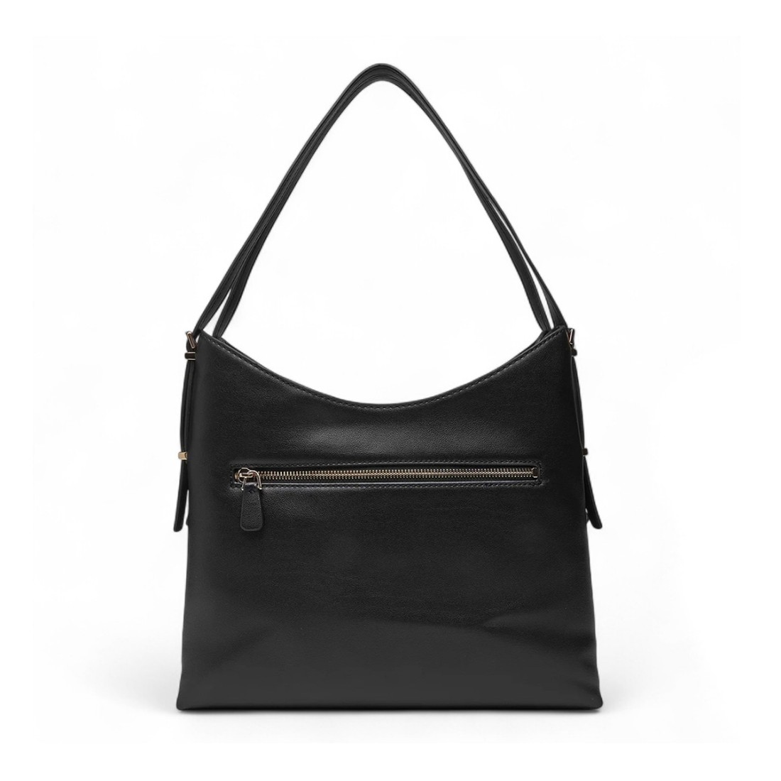 Elegante bolso Guess en negro fabricado en imitación de piel natural de alta calidad. Su diseño estructurado y su dura rigidez garantizan un ajuste perfecto en todo momento. Equipado con un cierre de clip magnético, ofrece espacio para el teléfono móvil y la cartera, con dos prácticos bolsillos interiores con cremallera. Dimensiones 33 x 28,5 x 10 cm, altura del asa 27 cm. Ideal para looks refinados y contemporáneos.Nuestro servicio al cliente está disponible de lunes a sábado de 10:00 a 19:30