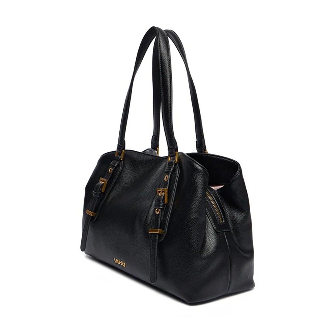 Bolso Liu Jo en negro elegante y compacto, perfecto para quienes buscan estilo y practicidad. Fabricado en polipiel rígida, tiene un único compartimento principal con cremallera, dos bolsillos con cierre magnético y uno con cremallera. Equipada con asas y una correa ajustable para el hombro, mide 30/36 x 24 x 14 cm y es ideal para el uso diario sin necesidad de guardar tamaños A4.Nuestro servicio al cliente está disponible de lunes a sábado de 10:00 a 19:30