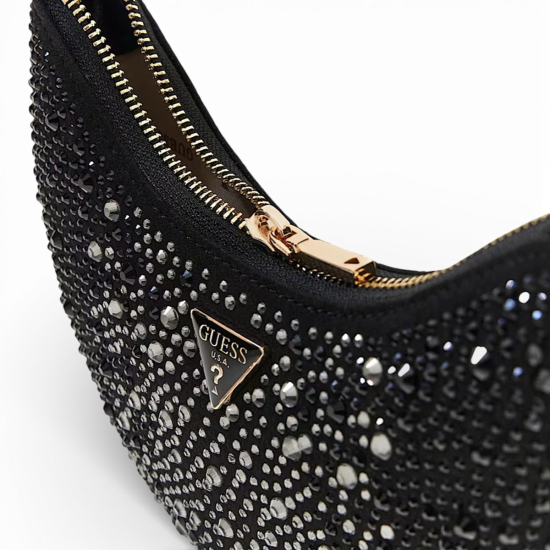 Descubre el bolso hobo Tasmin de GUESS: elegante y práctico, confeccionado en tejido negro con brillantes por todas partes y una insignia con el logotipo en la parte delantera. El asa de piel sintética garantiza la comodidad, mientras que el cierre de cremallera mantiene todo a salvo. Compacto pero espacioso, mide 21x17x12 cm y es perfecto para añadir un toque de estilo a cualquier look.Nuestro servicio al cliente está disponible de lunes a sábado de 10:00 a 19:30