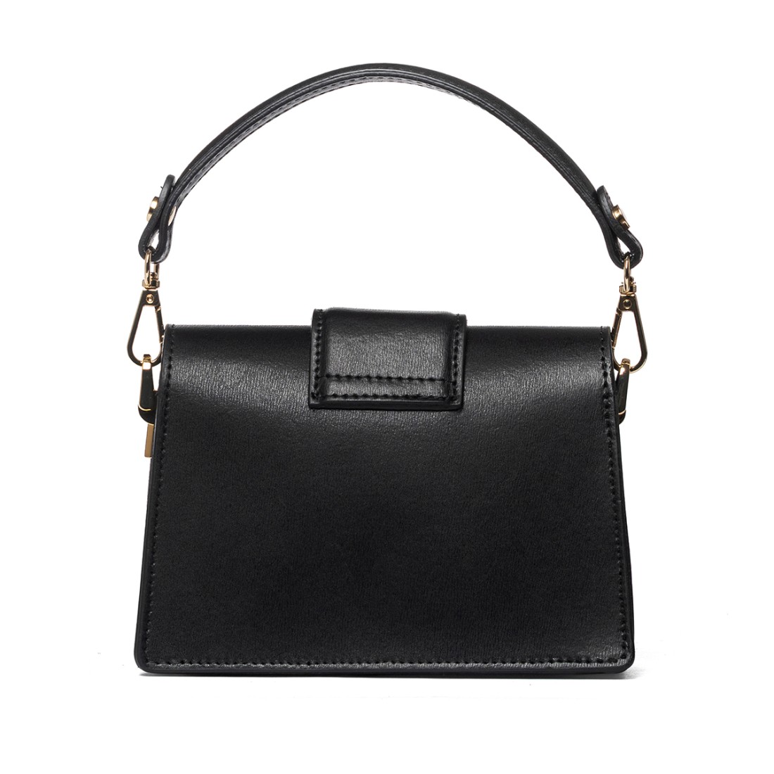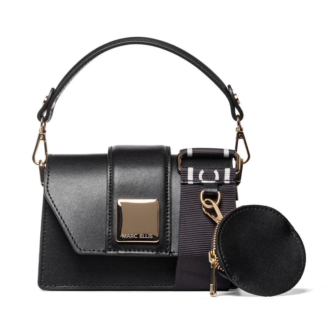 Bolso de hombro Marc Ellis modelo Kourtney S RH en auténtica piel negra, adornado con la insignia metálica frontal del logotipo. Versátil y práctico, cuenta con un asa bandolera extraíble y una correa ajustable para un doble uso. Cierre con solapa y botón magnético. Dimensiones compactas: 19 x 13 x 8 cm.Nuestro servicio al cliente está disponible de lunes a sábado de 10:00 a 19:30