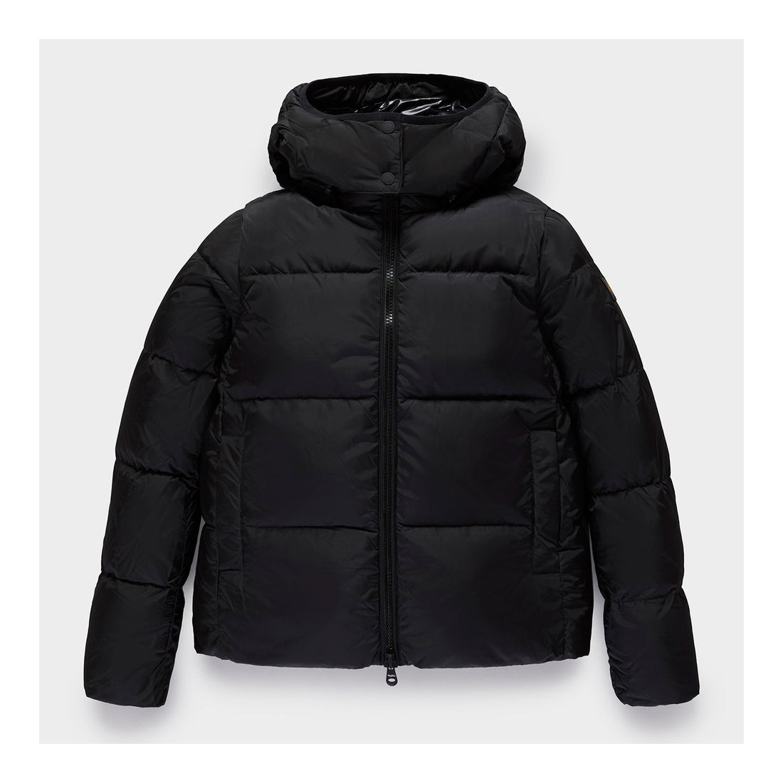 Chaqueta de plumón de invierno para mujer con un diseño moderno y ligeramente sobredimensionado, ideal para un look contemporáneo y cómodo. El relleno de plumón 90-10 garantiza calidez y suavidad incluso en los días más fríos. Confeccionada en nailon satinado, ofrece una refinada elegancia y un toque brillante. El cuello alto y la capucha desmontable ofrecen practicidad y versatilidad, perfectas para cualquier ocasión invernal.