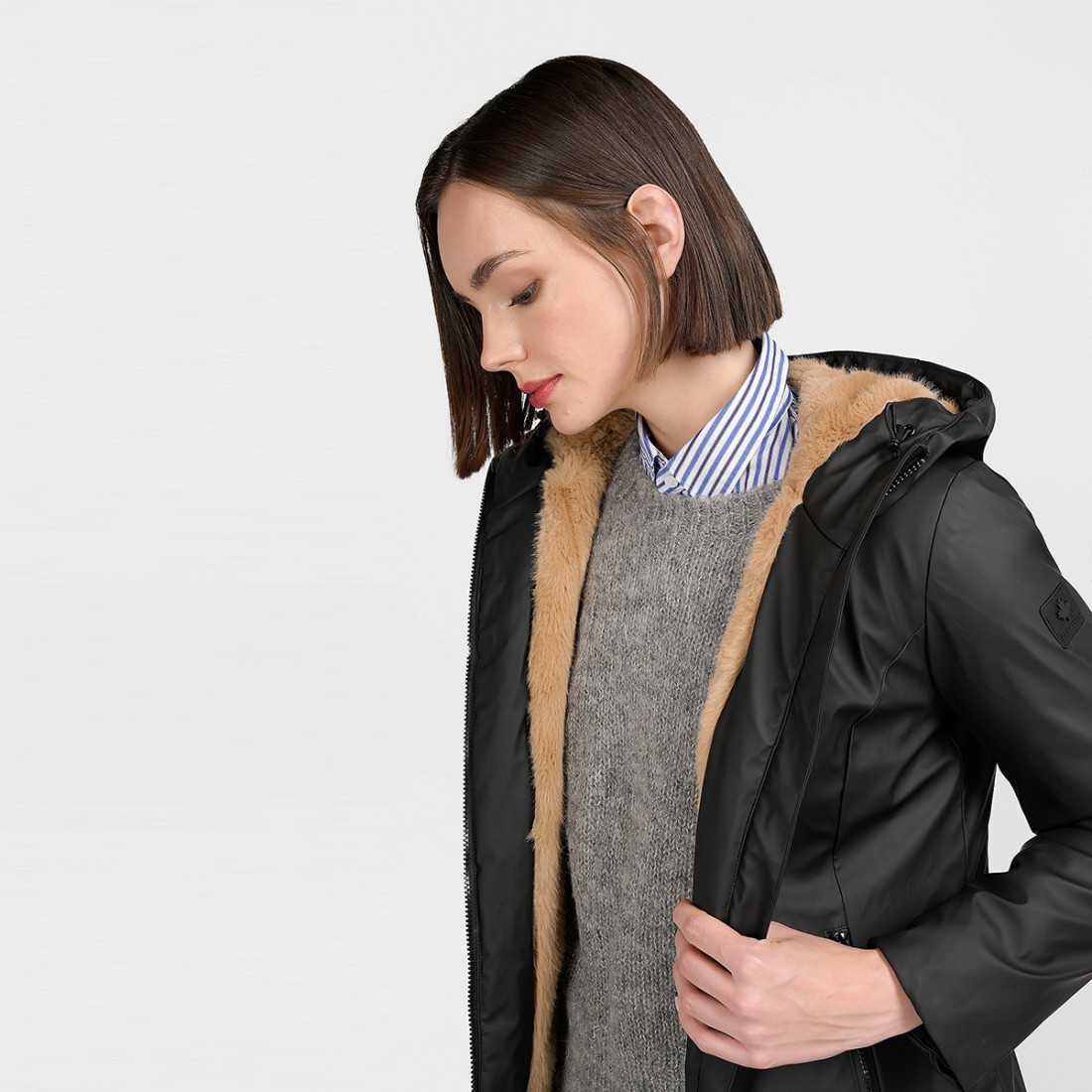 Terrebonne de Canadian es una chaqueta urban-chic de poliuretano negro que combina estilo y practicidad. El material impermeable protege de la lluvia, mientras que el suave forro de piel sintética garantiza comodidad y calidez. Perfecta para los días fríos, aporta un look moderno y atrevido a quienes desean destacar con una prenda elegante y duradera.