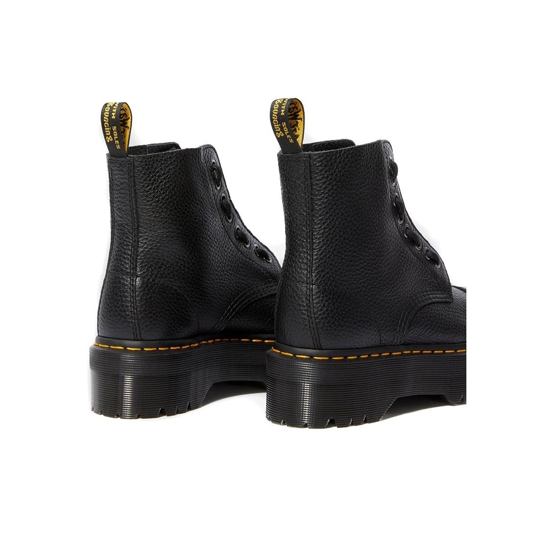 Descubra Sinclair, las icónicas botas de fuerte carácter, con cremallera extraíble, costuras amarillas y suela de plataforma Quad de 5,08 cm de altura. Fabricadas en Milled Nappa, una piel martillada suave, flexible y resistente, con soldadura Goodyear sellada a 700°C y costuras reforzadas, ofrecen comodidad y durabilidad desde el primer uso, combinando un estilo atrevido y una artesanía de calidad.Nuestro servicio al cliente está disponible de lunes a sábado de 10:00 a 19:30